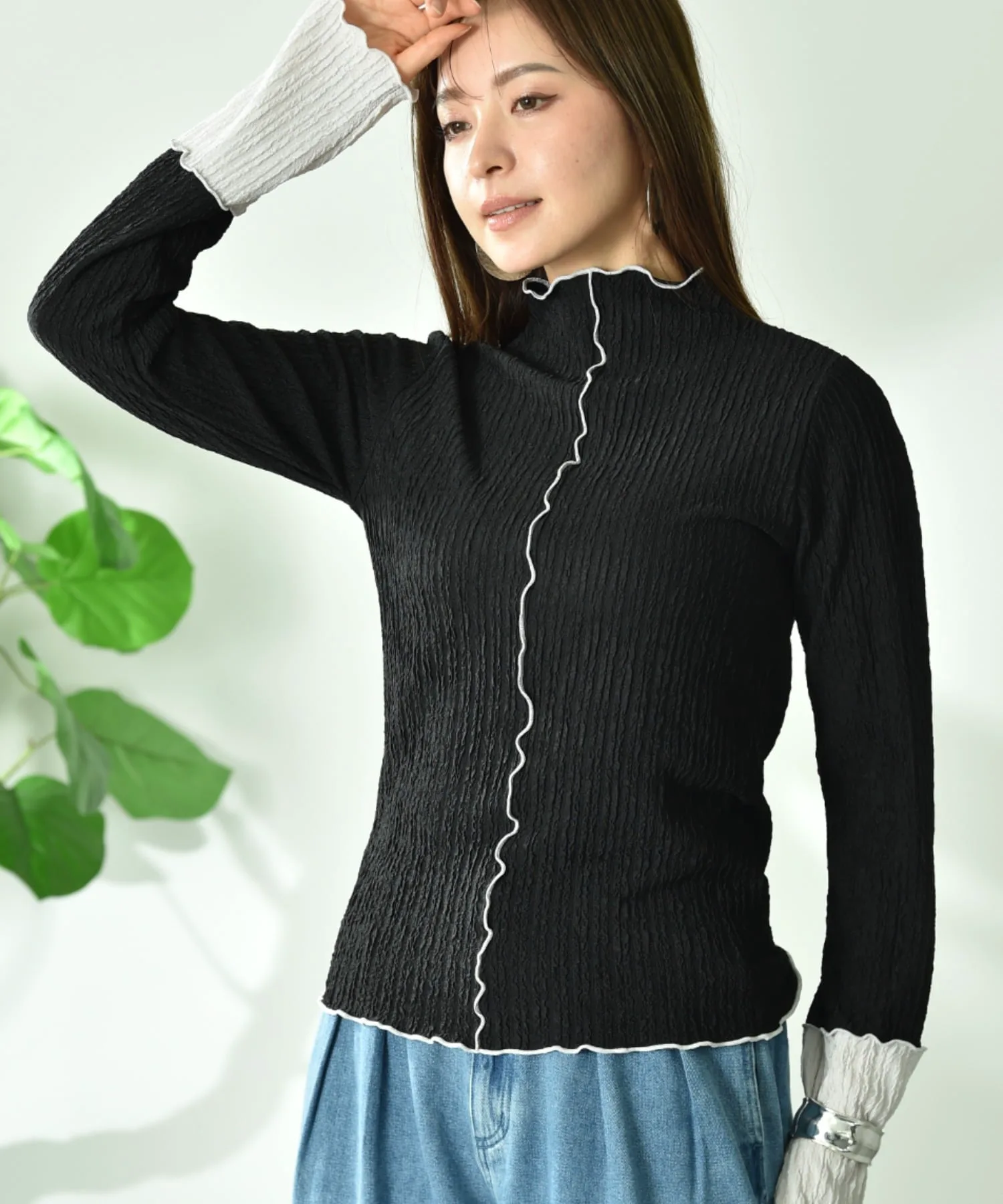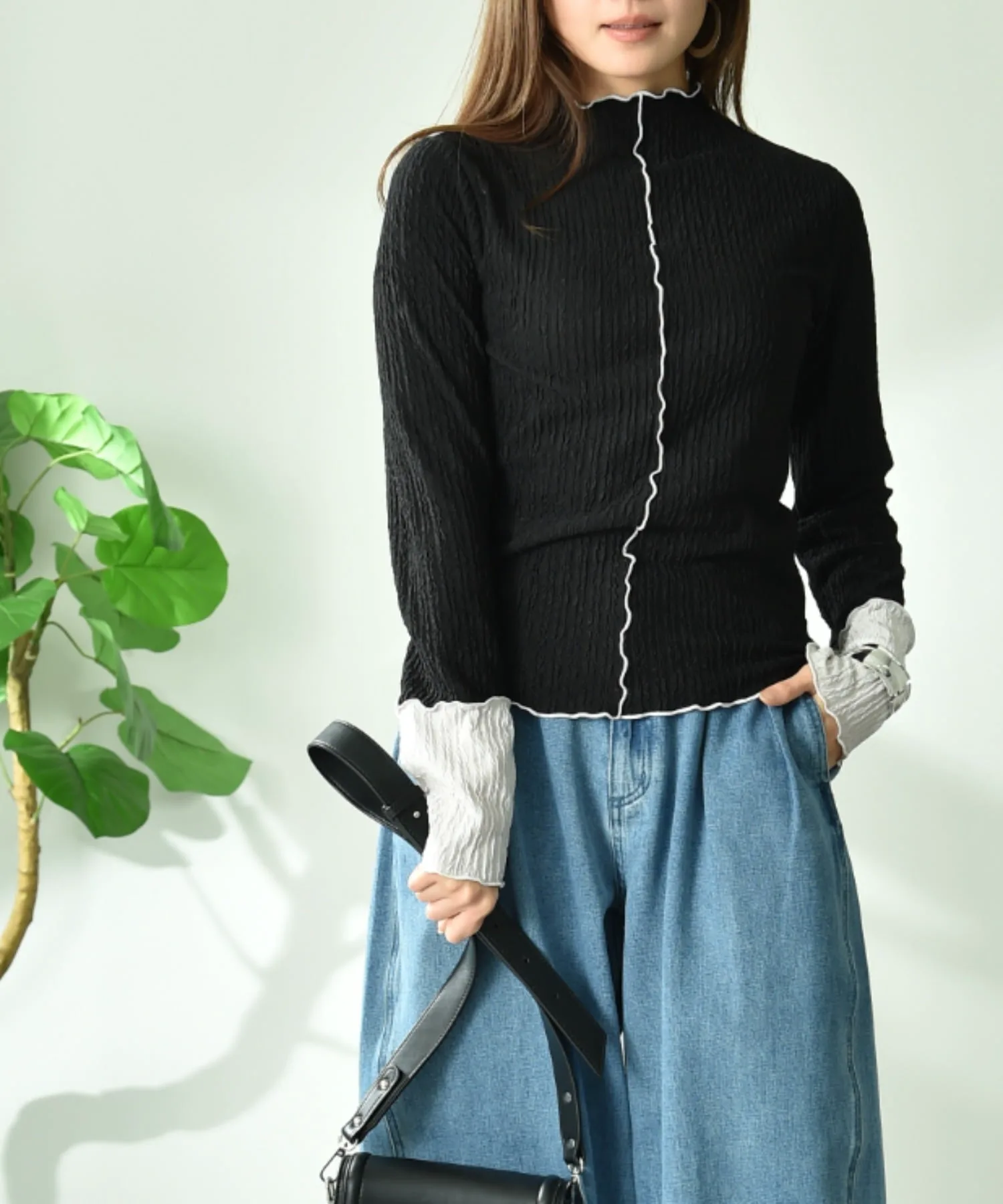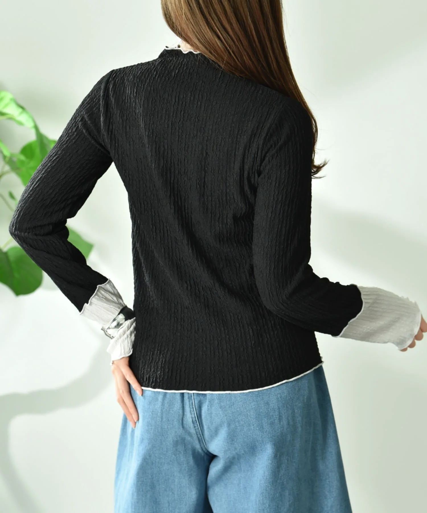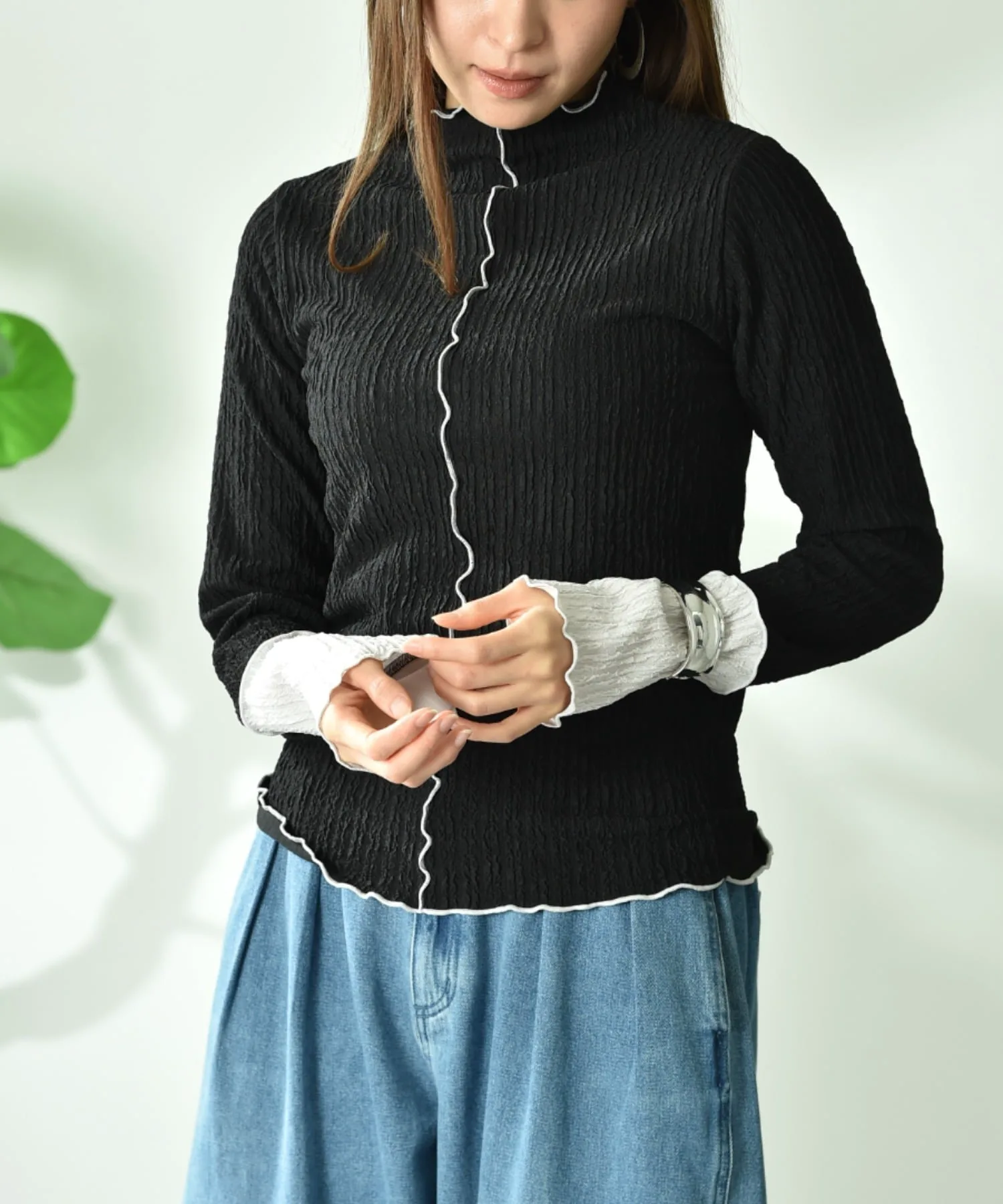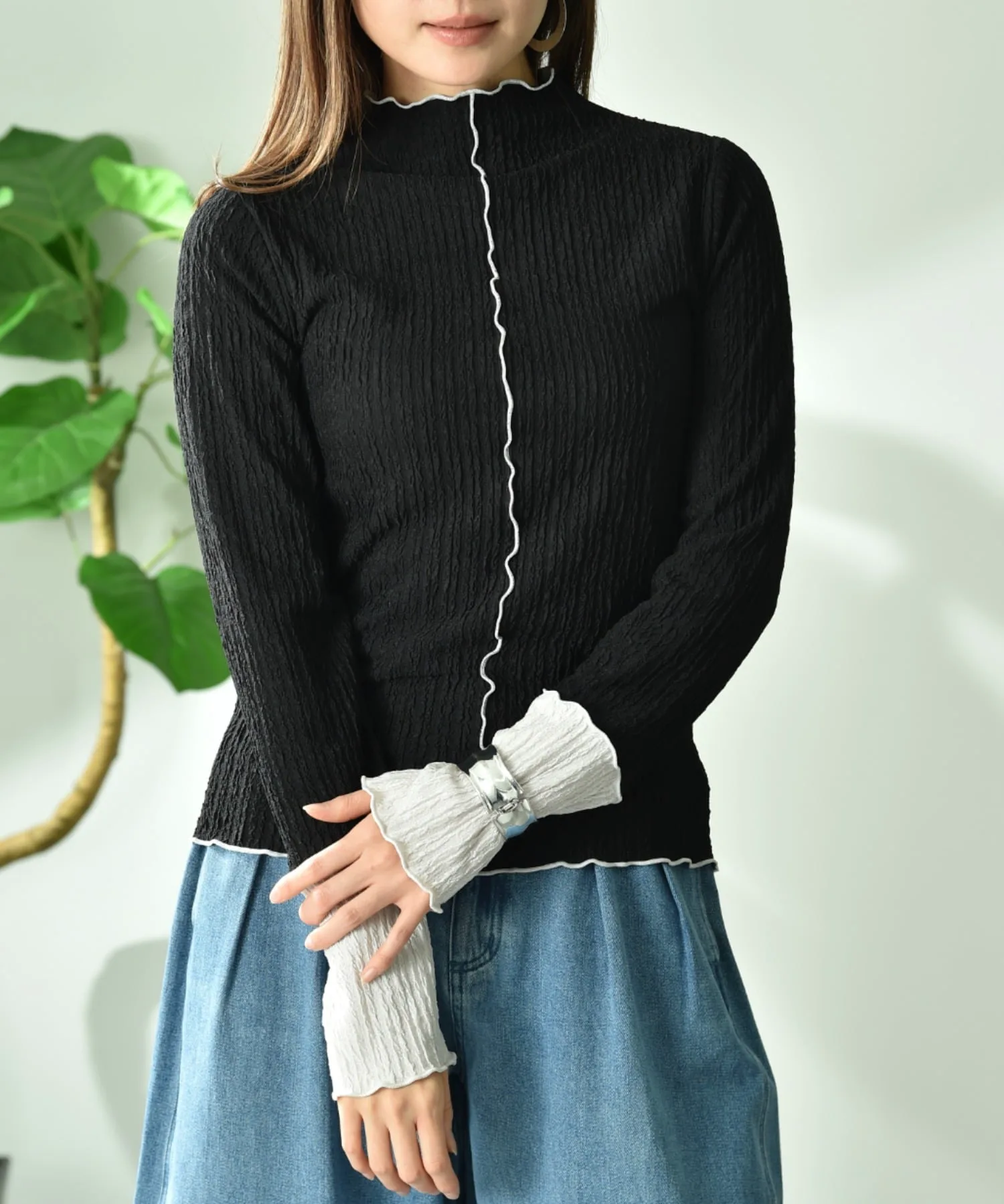 Тщательно подобранная жаккардовая ткань добавляет изысканности. Спокойная цветовая гамма и контрастные манжеты создают гармоничный образ. Размер не слишком облегающий, поэтому его легко носить отдельно. Скромный высокий вырез горловины мягко облегает шею, создавая стройный силуэт.◎ Он удобен в ношении и приятен на ощупь, что делает его идеальным для повседневной носки.