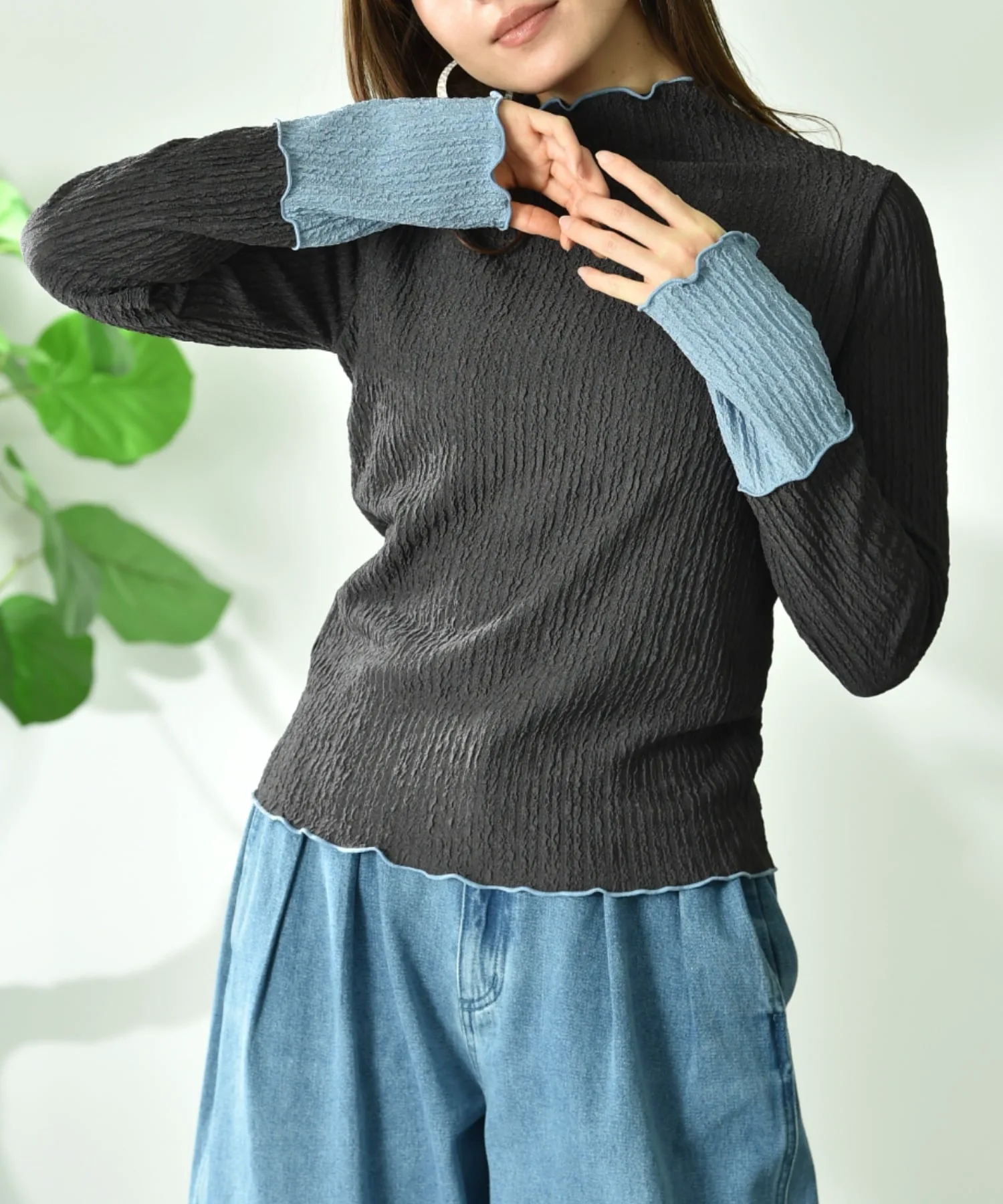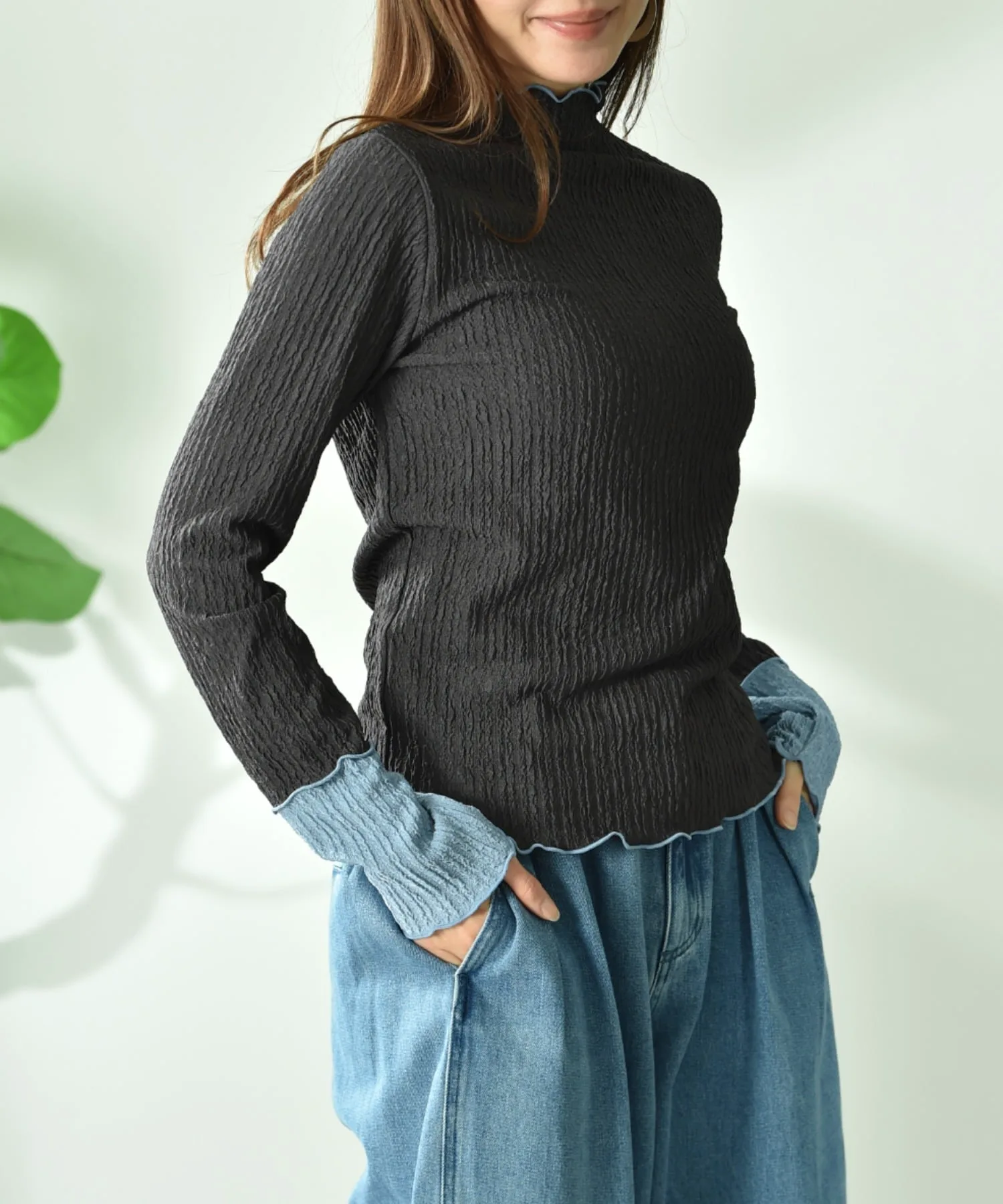 Тщательно подобранная жаккардовая ткань добавляет изысканности. Спокойная цветовая гамма и контрастные манжеты создают гармоничный образ. Размер не слишком облегающий, поэтому его легко носить отдельно. Скромный высокий вырез горловины мягко облегает шею, создавая стройный силуэт.◎ Он удобен в ношении и приятен на ощупь, что делает его идеальным для повседневной носки.