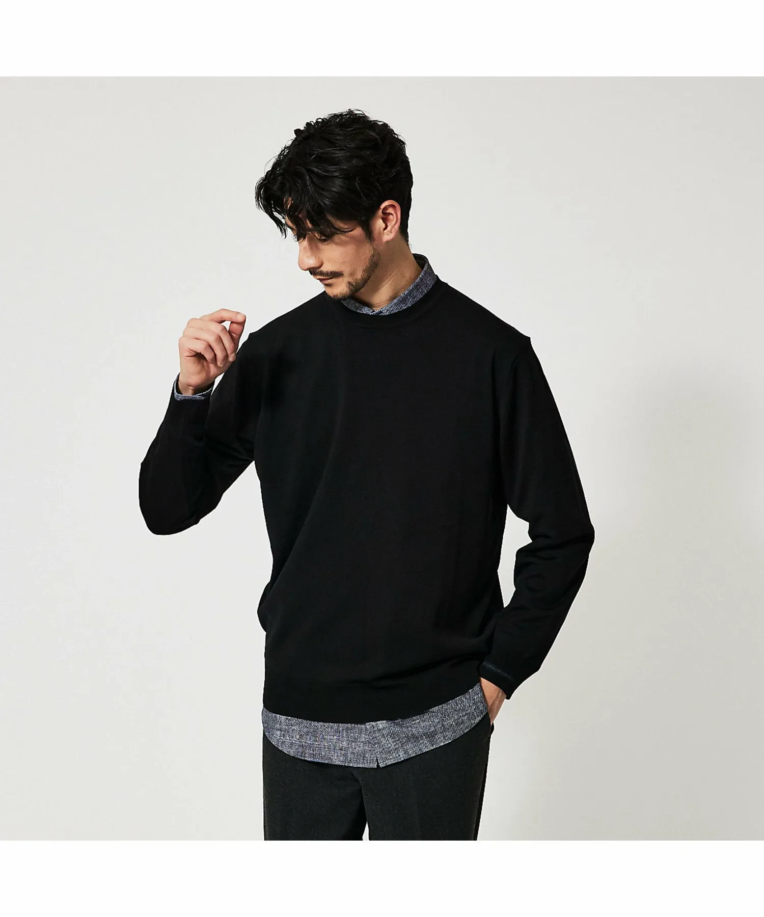 Идеально подходит в качестве нижнего слоя для жакета или комплекта. Его обтекаемый силуэт не создает лишнего объема, даже если носить его поверх рубашки.