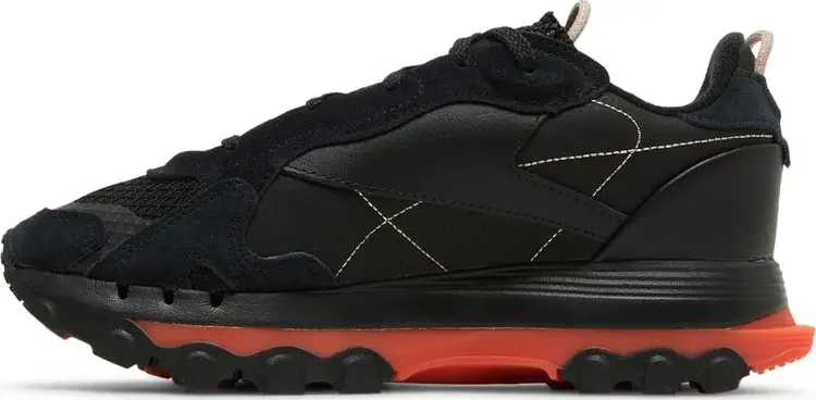 Женские классические кожаные кроссовки Cardi B x Reebok Core Black Fiery Orange отличаются модным дизайном, отражающим личный стиль рэпера из Бронкса. Черный верх сочетает в себе кожаные панели с замшевыми накладками и открытую сетчатую конструкцию в области носка. Акценты цвета шампанского переходят на пару язычков со шнурком, а также вышитый брендинг Reebok на язычке и боковой панели. Кроссовки опираются на черную промежуточную подошву из ЭВА, поддерживаемую двухцветной резиновой подошвой с выступами черного и ярко-оранжевого цвета.