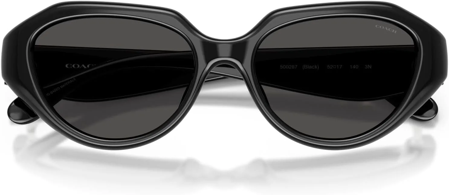 Цвет: Черный/Серый однотонный Форма изделия: шестиугольная Цвет линз: серый сплошной Название модели: Hc8433u Универсальный размер Узор: шестиугольный с рельефной фурнитурой в виде буквы С. Форма солнцезащитных очков: обтекаемая Тип посадки: Универсальный Описание покрытия линз: Защитное покрытие от УФ-излучения. Защита от ультрафиолетового излучения: Да Тип поляризации: Неполяризованный Бренд: COACH Возрастная категория: Взрослые Производитель: COACH Тип товара: Солнцезащитные очки Количество единиц: 1 шт. Материал рамы: пластик Материал линзы: пластик Инструкция по уходу за изделием: Протирайте прилагаемой салфеткой. Материал: пластик Длина дужки: 140 миллиметров Ширина бриджа: 17 миллиметров