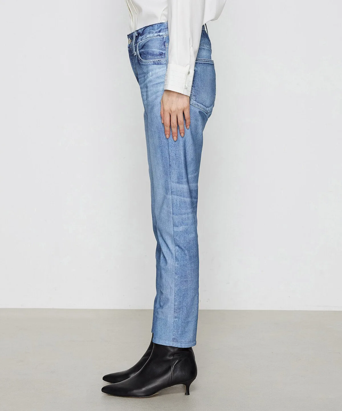 Эти брюки изготовлены из эластичной трикотажной ткани с реалистичным принтом под джинсовую ткань.