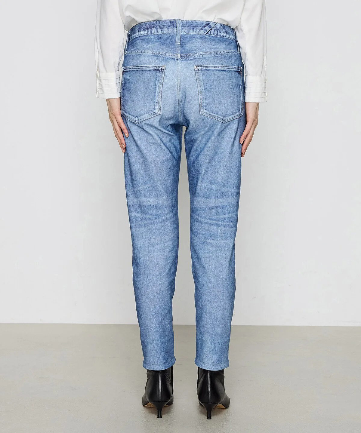Данные о джинсовой ткани запечатлены в 3D, а потертости, стирка, накопление красителя и винтажная текстура реалистично воспроизведены с помощью струйной печати, которая может отображать более 16 миллионов цветов.