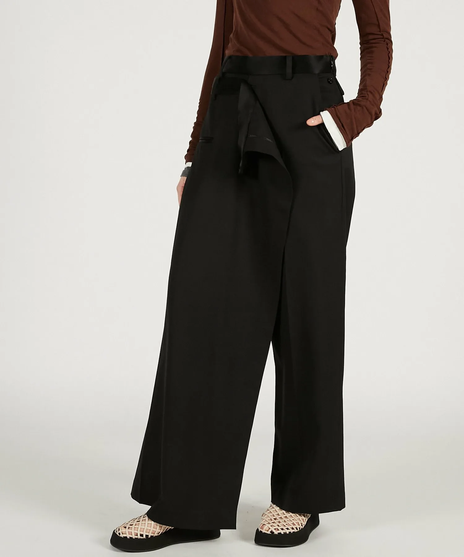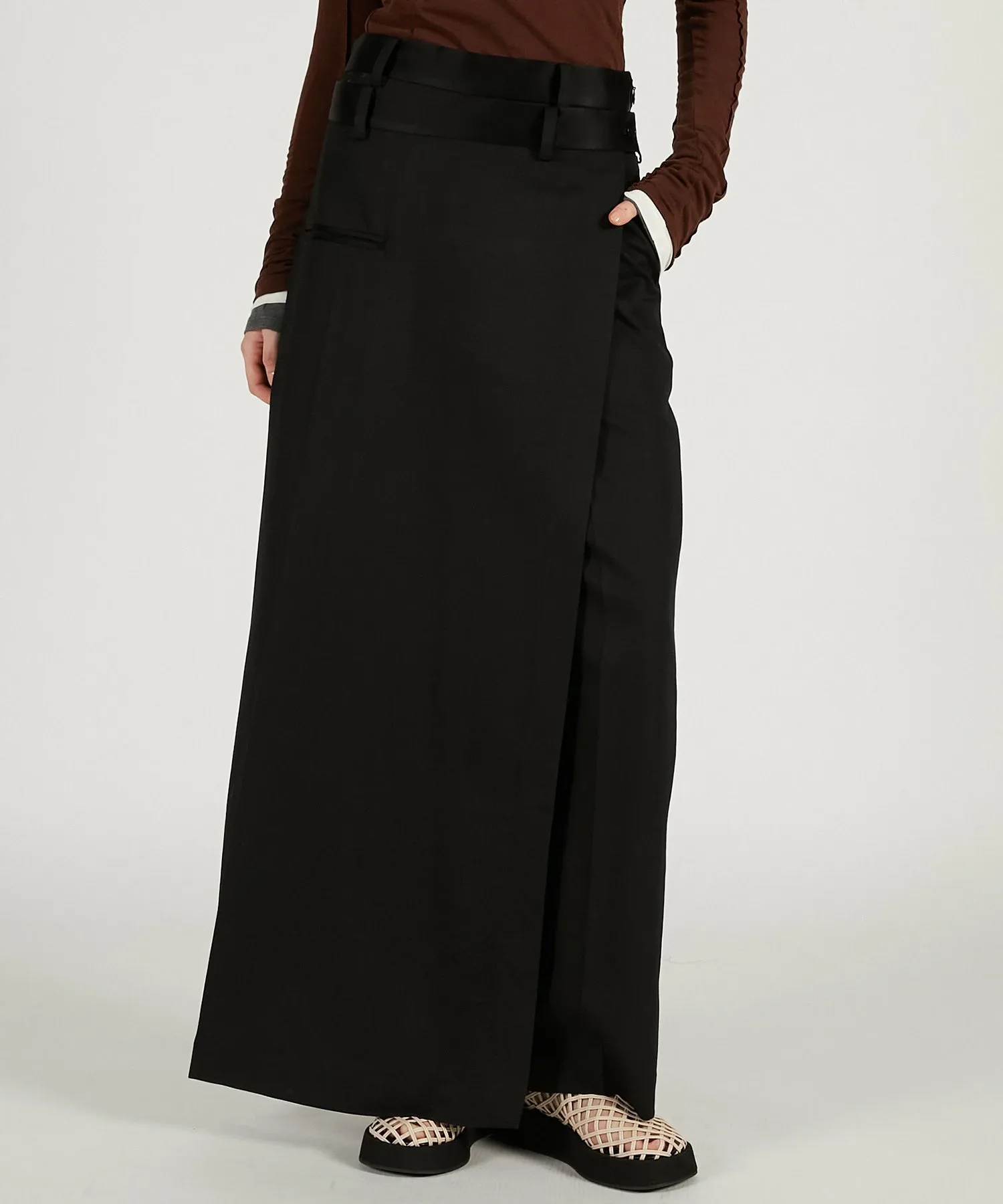 Брюки-макси с запахом и заниженной талией для модного образа.