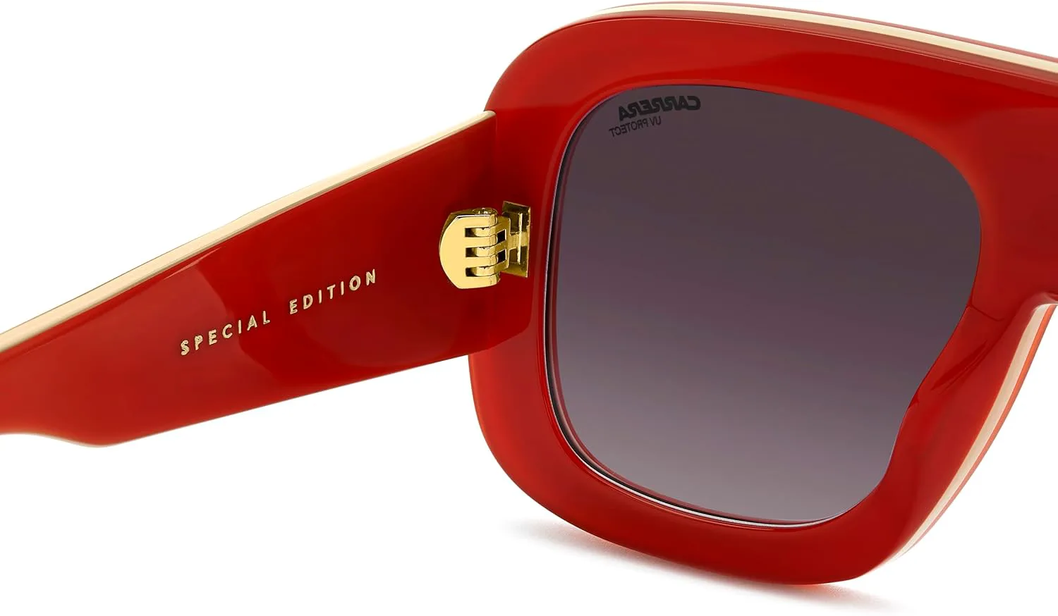 Эти солнцезащитные очки из специальной серии для женщин воплощают в себе уникальную ДНК бренда Carrera. Смелый дизайн передней части мгновенно узнаваем, а многослойная конструкция создает двухцветный эффект. Дужки – вершина стиля, украшенные тисненым логотипом Carrera в виде буквы «C» – деталь, которая делает эти очки еще более эксклюзивными. Некоторые цветовые варианты имеют зеркальные линзы. Эта пара солнцезащитных очков поставляется в специальной упаковке.