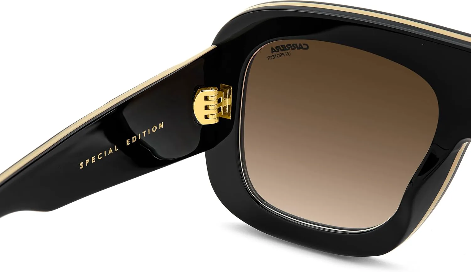 Эти солнцезащитные очки из специальной серии для женщин воплощают в себе уникальную ДНК бренда Carrera. Смелый дизайн передней части мгновенно узнаваем, а многослойная конструкция создает двухцветный эффект. Дужки – вершина стиля, украшенные тисненым логотипом Carrera в виде буквы «C» – деталь, которая делает эти очки еще более эксклюзивными. Некоторые цветовые варианты имеют зеркальные линзы. Эта пара солнцезащитных очков поставляется в специальной упаковке.