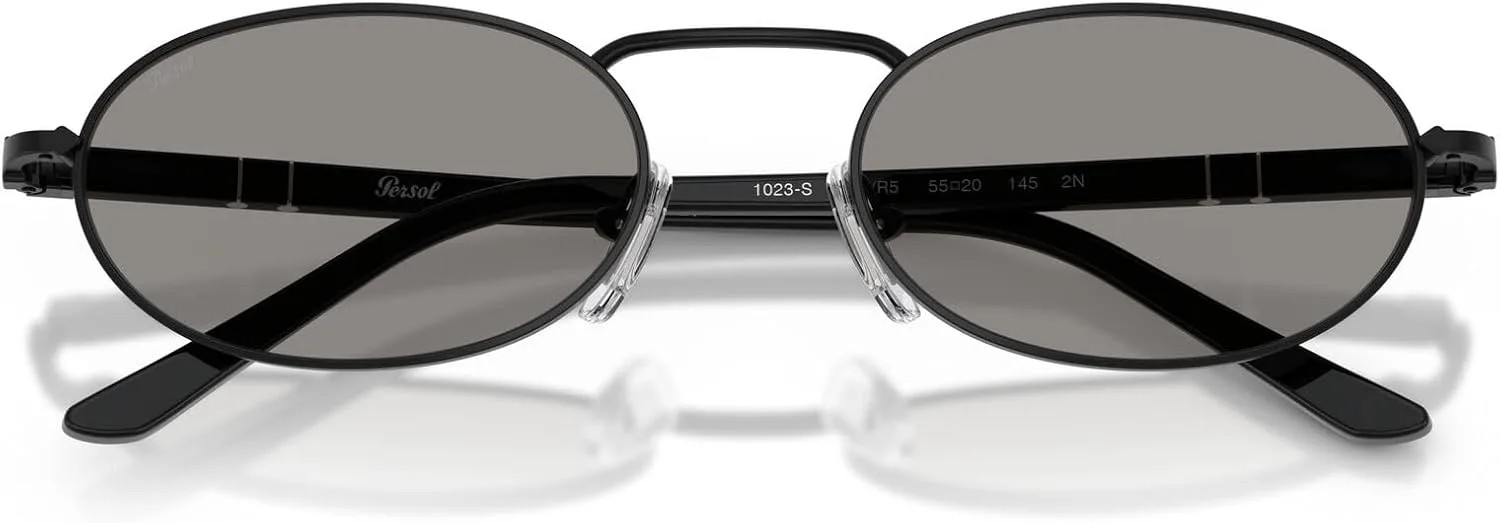 ОСОБЕННОСТИ ОПРАВЫ: Модель PO1023S имеет овальную черную оправу и серые линзы.
