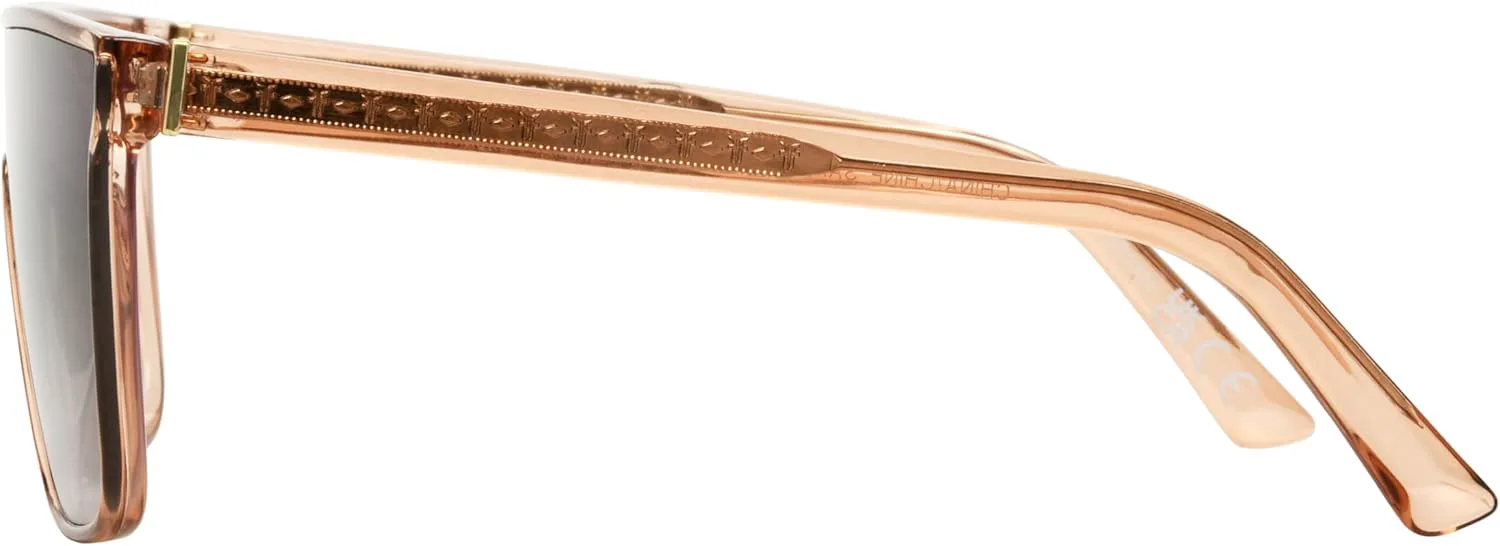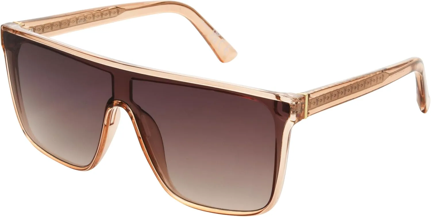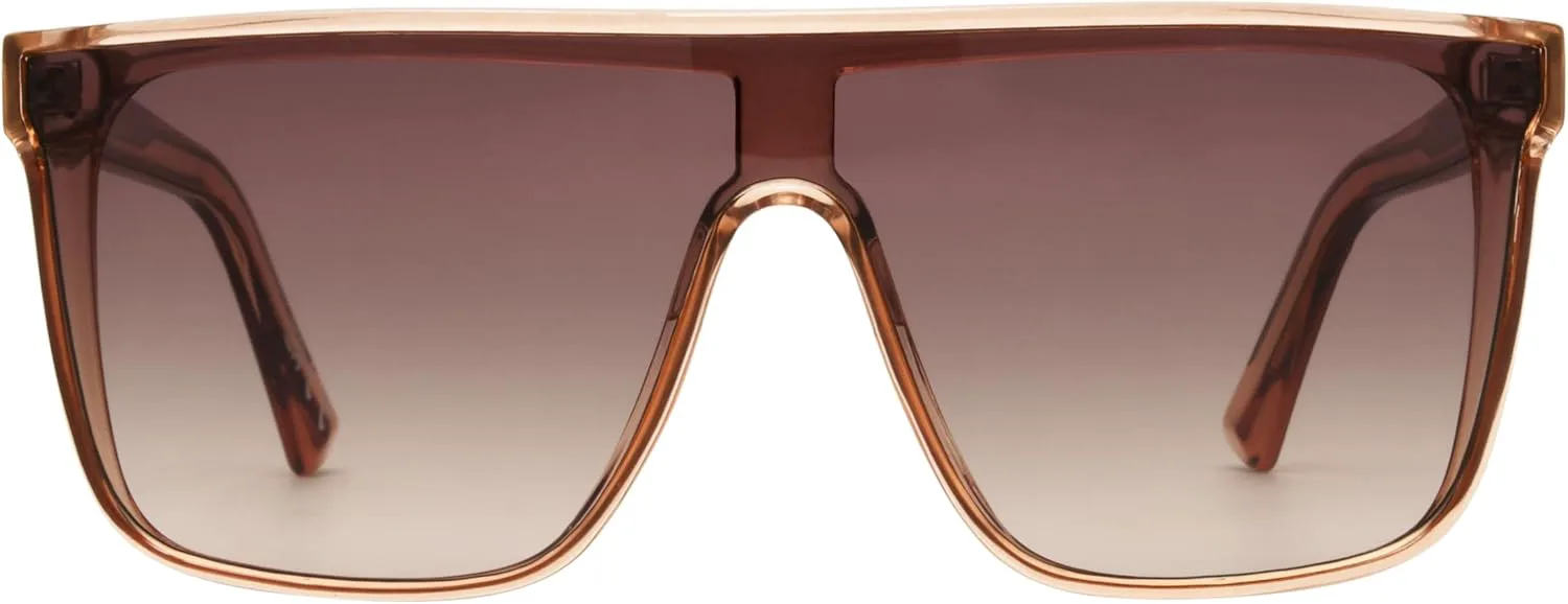 Женские солнцезащитные очки Frye Ruby отличаются смелой оправой в форме щита с градиентным переходом цвета таупе, создавая элегантный и футуристически стильный образ. Тонкие текстурированные дужки обеспечивают надежную и удобную посадку. Оправа изготовлена из 100% переработанного пластика. Оснащенные линзами со 100% защитой от UVA-UVB-лучей, а также устойчивыми к царапинам и ударам, эти солнцезащитные очки созданы для обеспечения как защиты от солнца, так и практичной повседневной носки.