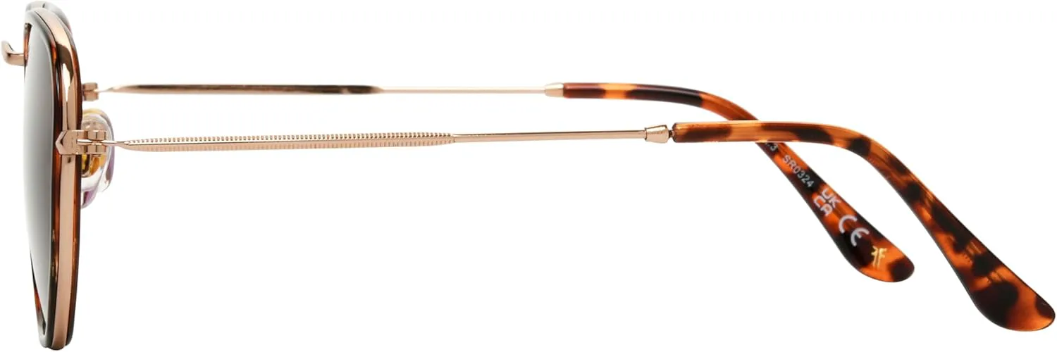 Эти женские солнцезащитные очки Frye Josie отличаются оригинальной геометрической оправой черепахового цвета, придающей современному силуэту ретро-стиль. Тонкие металлические дужки с наконечниками черепахового цвета обеспечивают удобную и комфортную посадку на весь день. Благодаря 100% защите от UVA-UVB-лучей и ударопрочности линз, эти солнцезащитные очки гарантируют стиль и долговечность в любых приключениях.