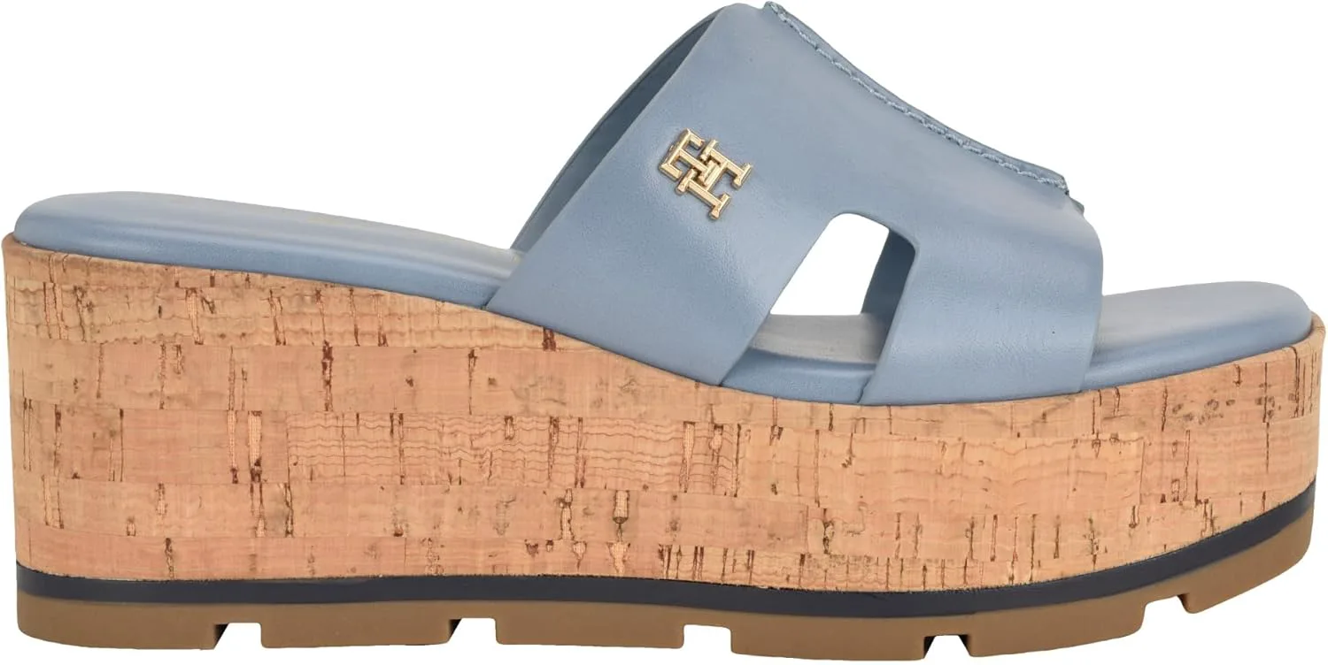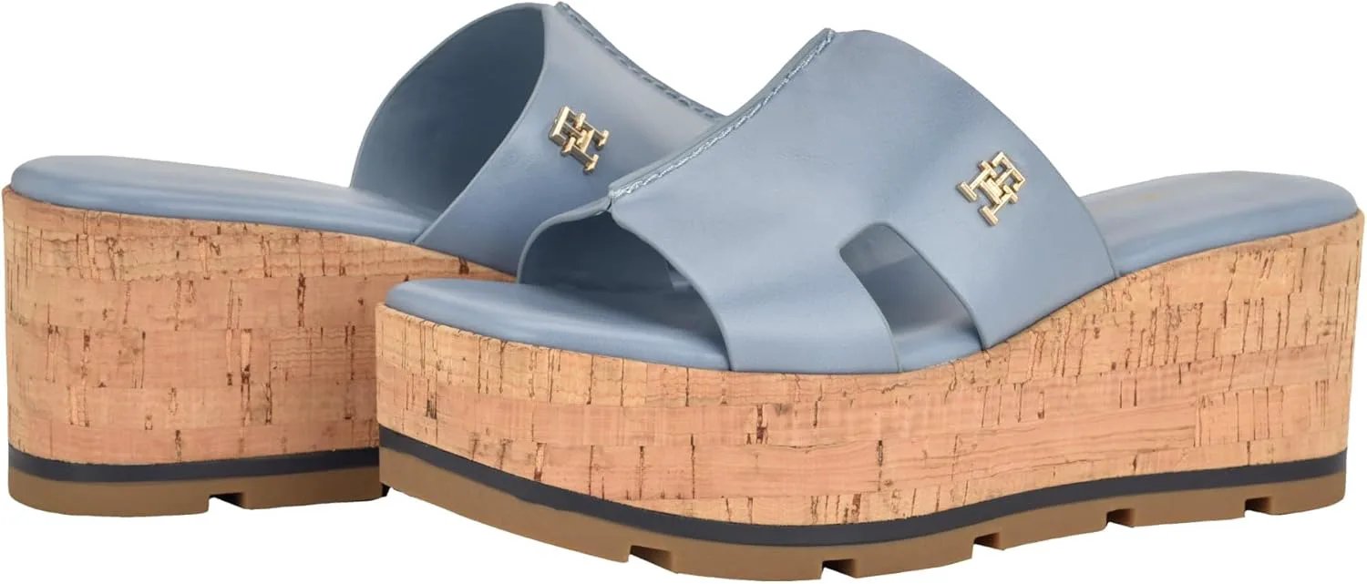 Женские сандалии Tommy Hilfiger Heliena с пробковой отделкой на устойчивой платформе и клиновидном каблуке вдохновят вас шагать с уверенностью и стилем, будь то на набережной или на песке.