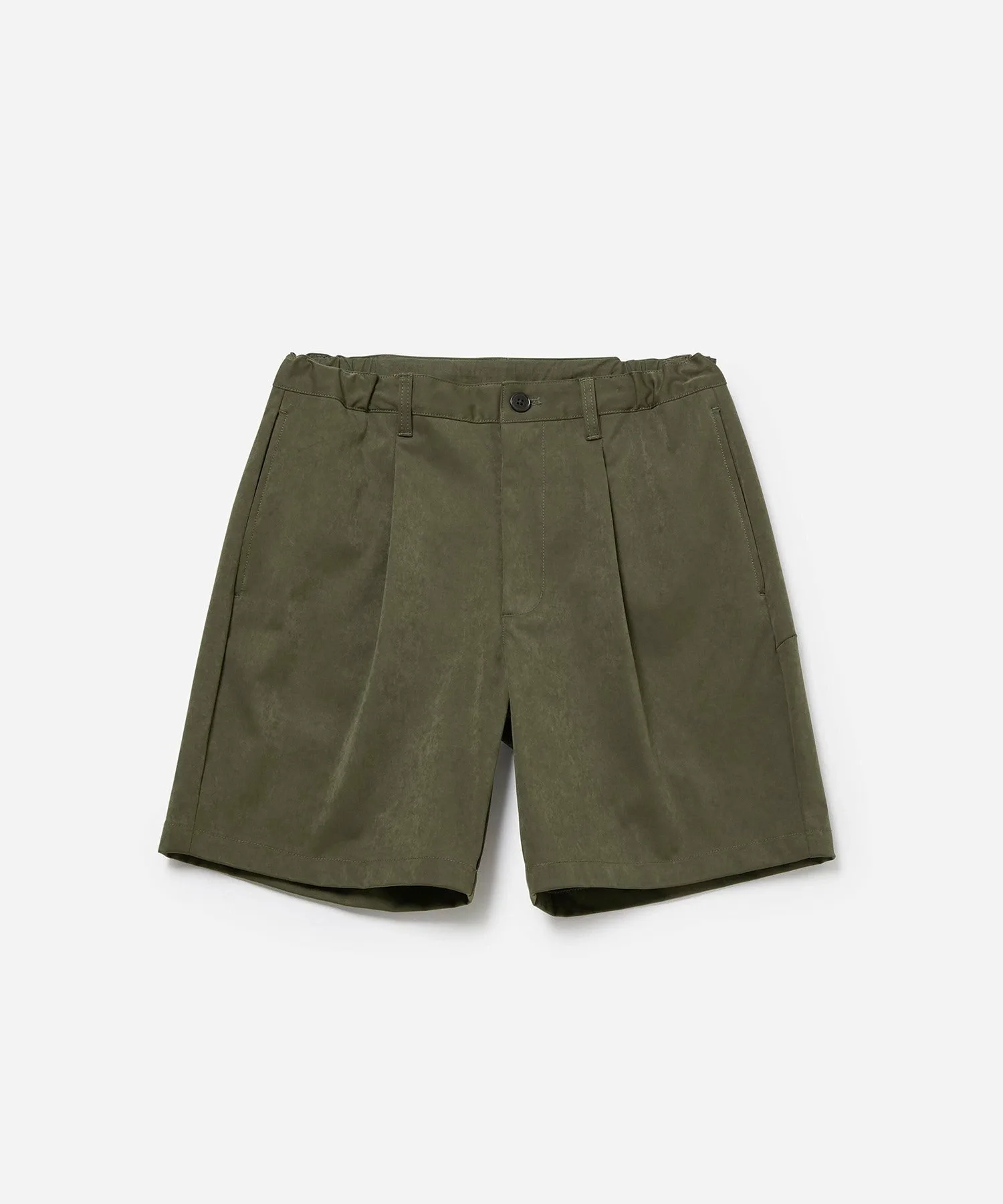 Шорты с одной складкой, замшевой текстурой и плотной поверхностью.