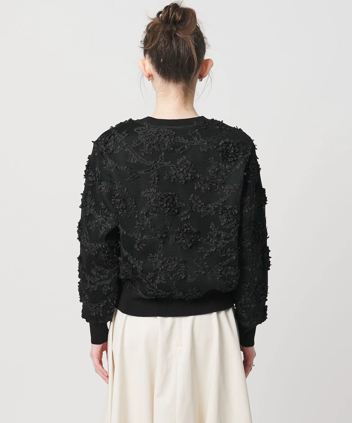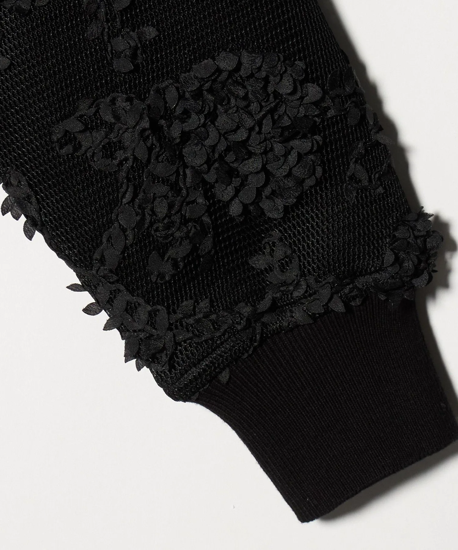 Внешняя сторона выполнена из двухсторонней сетки с объемной вышивкой.