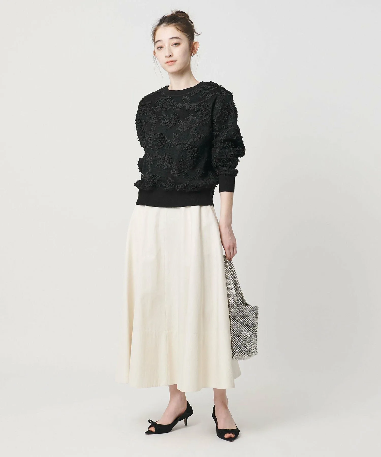 При обращении в магазин, пожалуйста, сообщите название/номер товара, указанные ниже, в любом магазине UNITED ARROWS по всей стране. Название товара: UBCMDEMBFLWMESHPO Номер товара: 15131830001 Рост: 164 см Обхват груди: 76 см Обхват талии: 60 см Обхват бедер: 89 см Размер одежды: Свободный