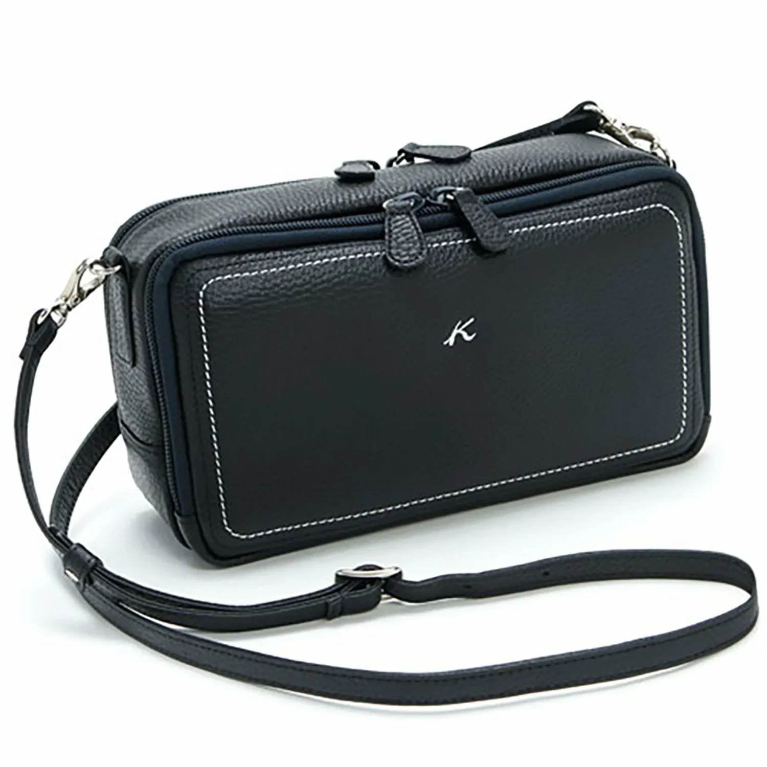 Эта сумочка изготовлена из мягкой, усаженной коровьей кожи. Она компактна и позволяет носить с собой мелкие предметы, такие как купюры, монеты, карты, смартфон, сберегательную книжку и кошелек. Сумочка имеет широкую боковую стенку и квадратную форму, обеспечивая достаточно места для хранения. Плечевой ремень отстегивается, поэтому ее можно использовать и как косметичку. Она идеально подходит как для повседневного использования, так и для путешествий.