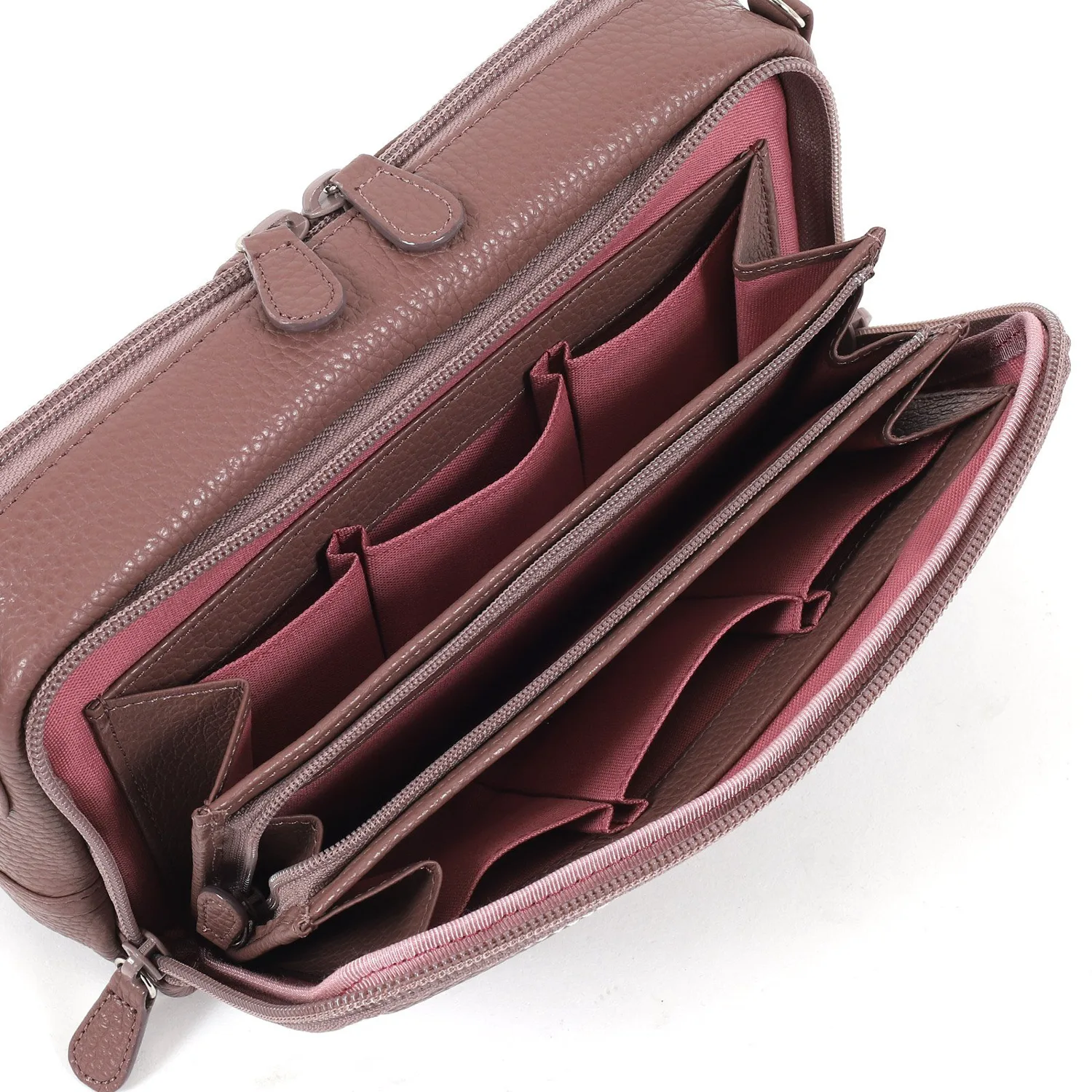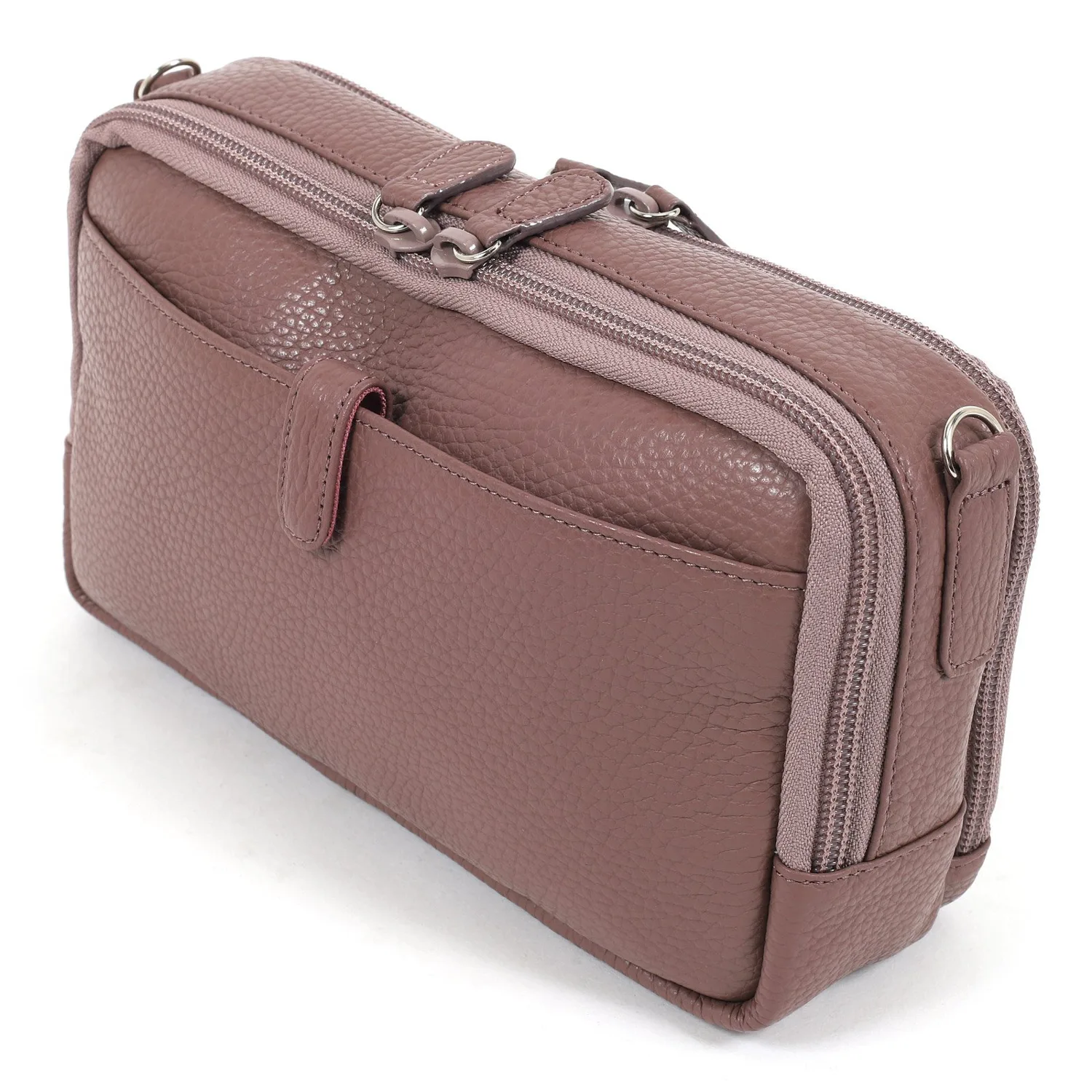Эта сумочка изготовлена из мягкой, усаженной коровьей кожи. Она компактна и позволяет носить с собой мелкие предметы, такие как купюры, монеты, карты, смартфон, сберегательную книжку и кошелек. Сумочка имеет широкую боковую стенку и квадратную форму, обеспечивая достаточно места для хранения. Плечевой ремень отстегивается, поэтому ее можно использовать и как косметичку. Она идеально подходит как для повседневного использования, так и для путешествий.
