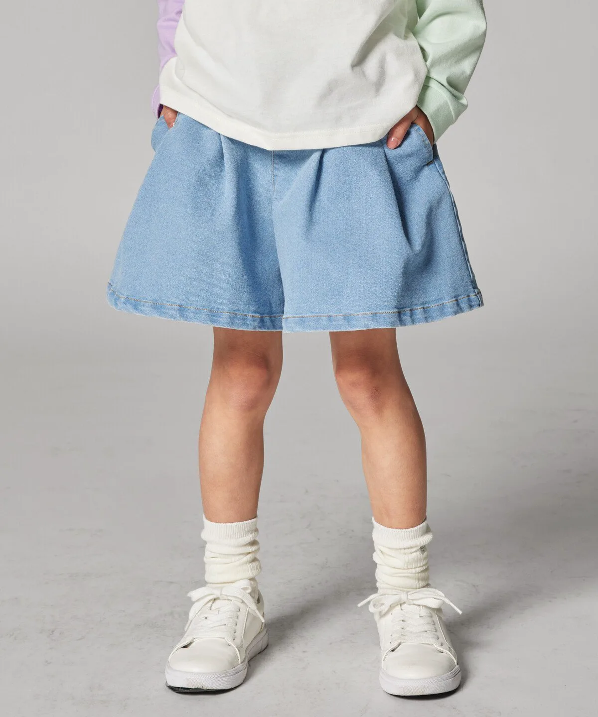 Эти кюлоты имеют расклешенную юбку со складками, создающими эффект стройности в области живота и талии.