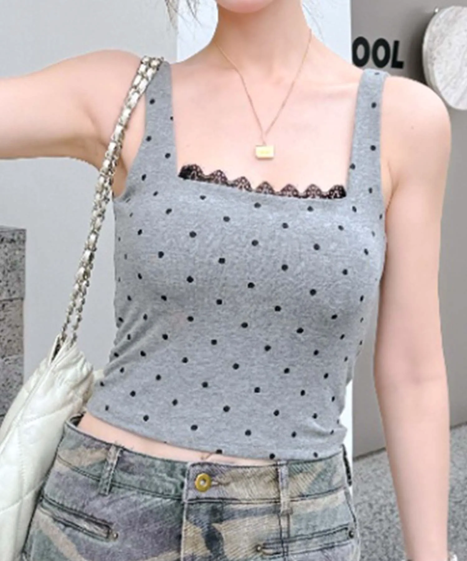 Майка в горошек! Широкий крой на плечах выглядит мило. Она мягкая и эластичная, идеально сидит, создавая ощущение комфорта.