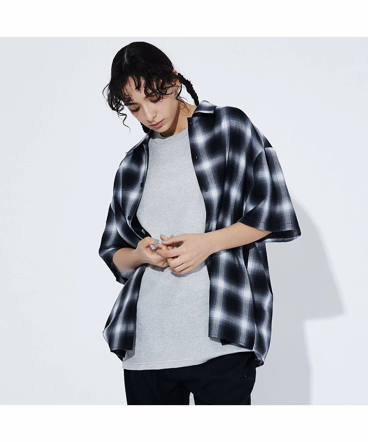 ●Простая рубашка в клетку омбре с оптимальной степенью свободы.