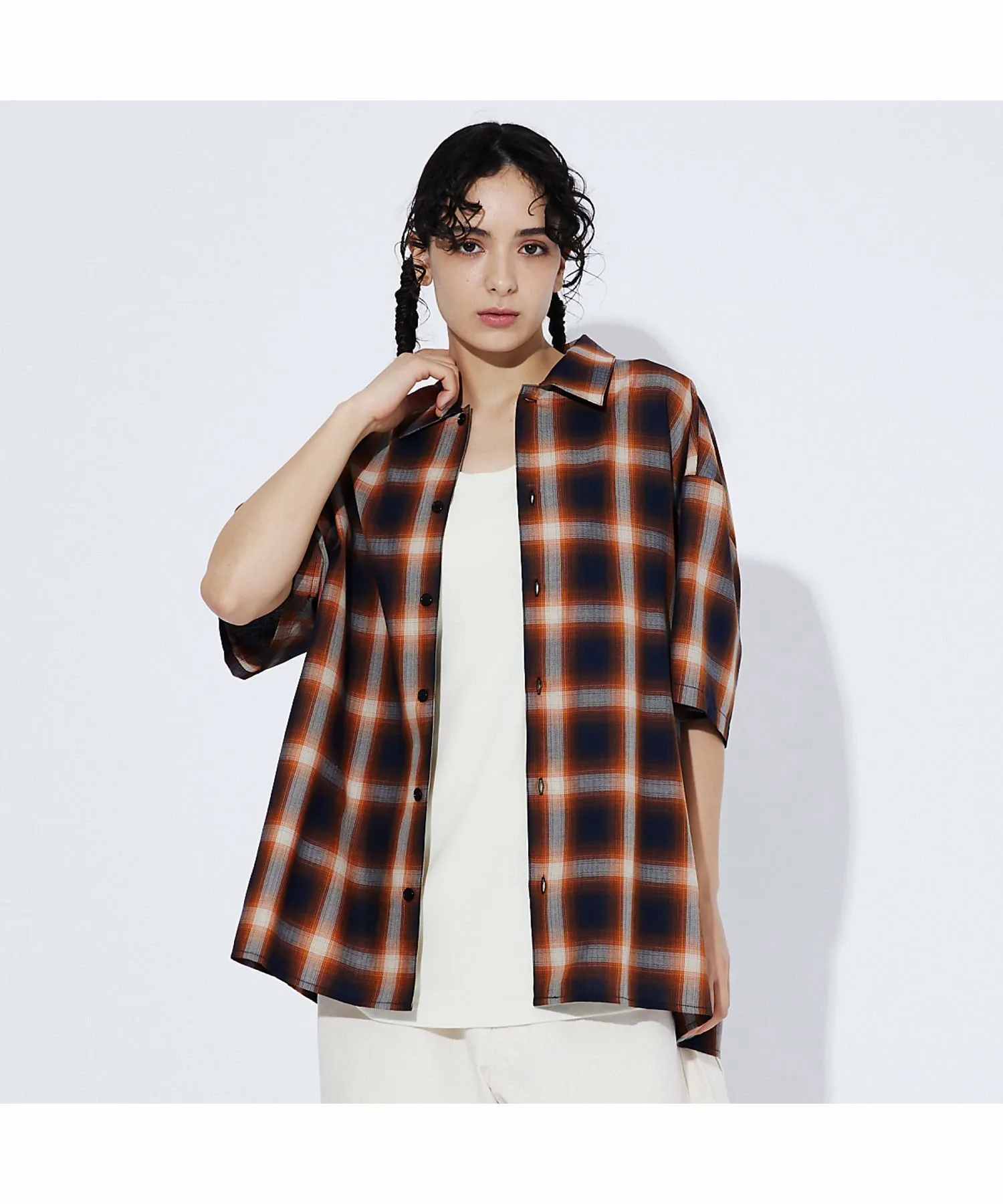 ●Простая рубашка в клетку омбре с оптимальной степенью свободы.