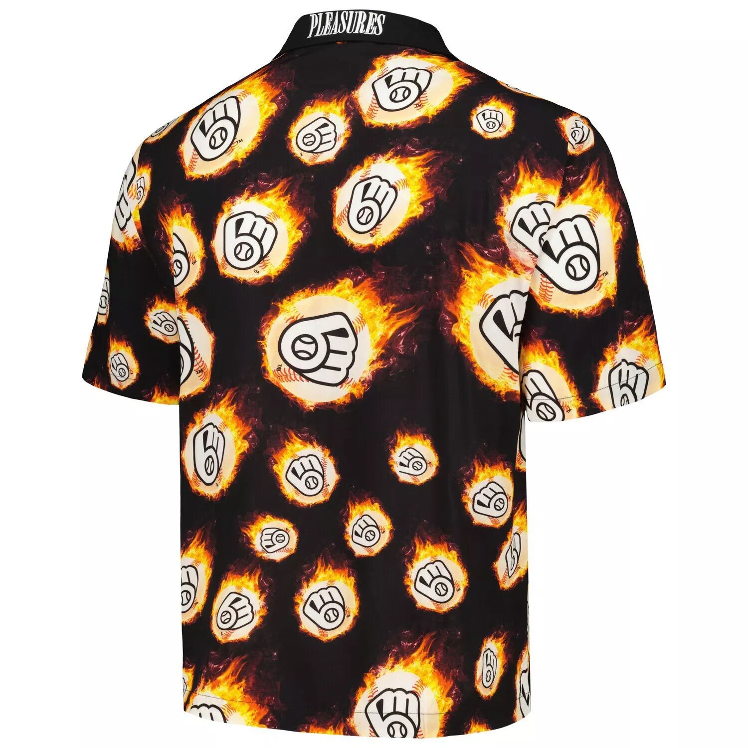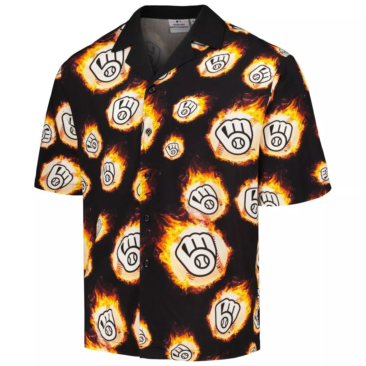 Мужская черная рубашка на пуговицах Milwaukee Brewers Flame Fireball