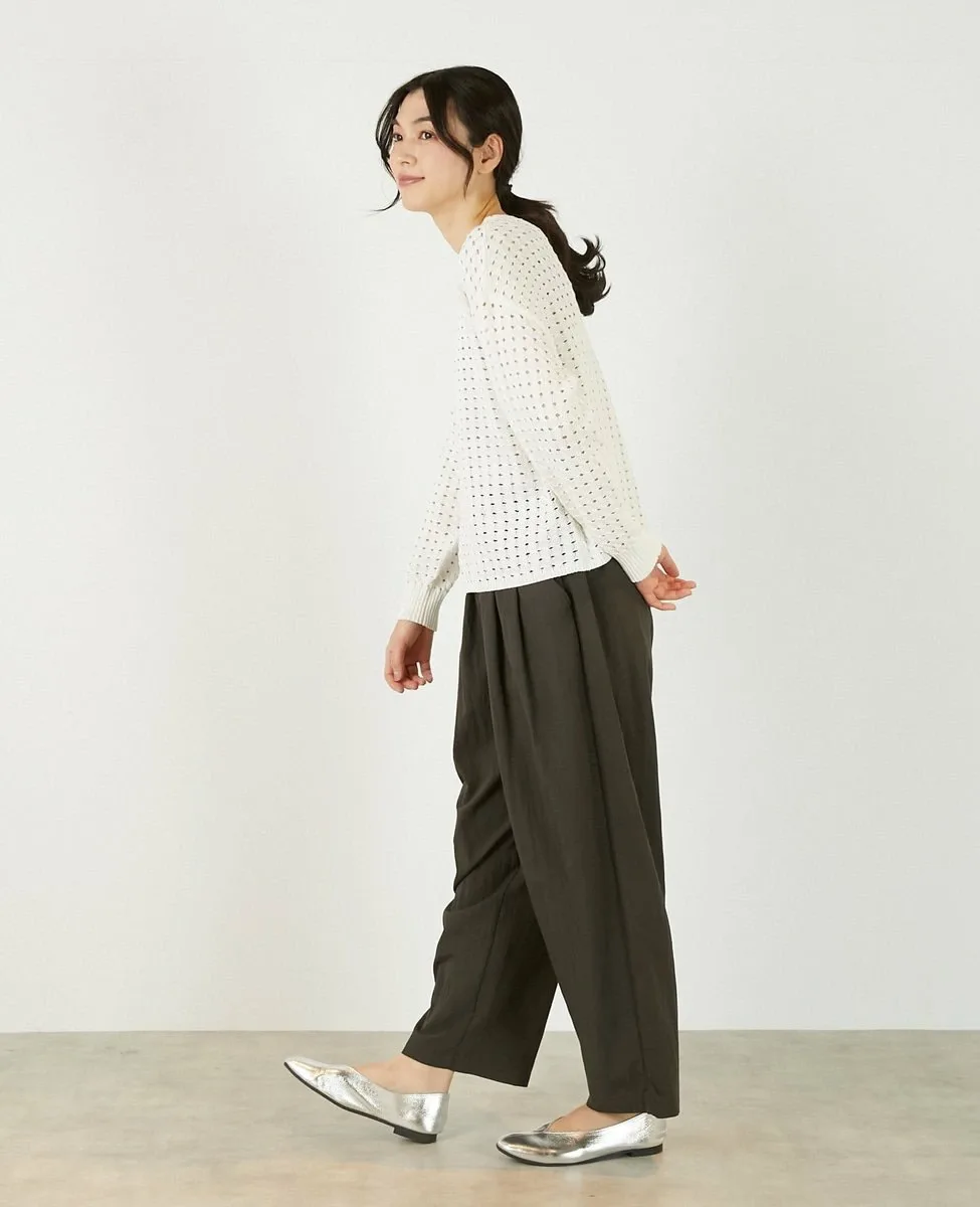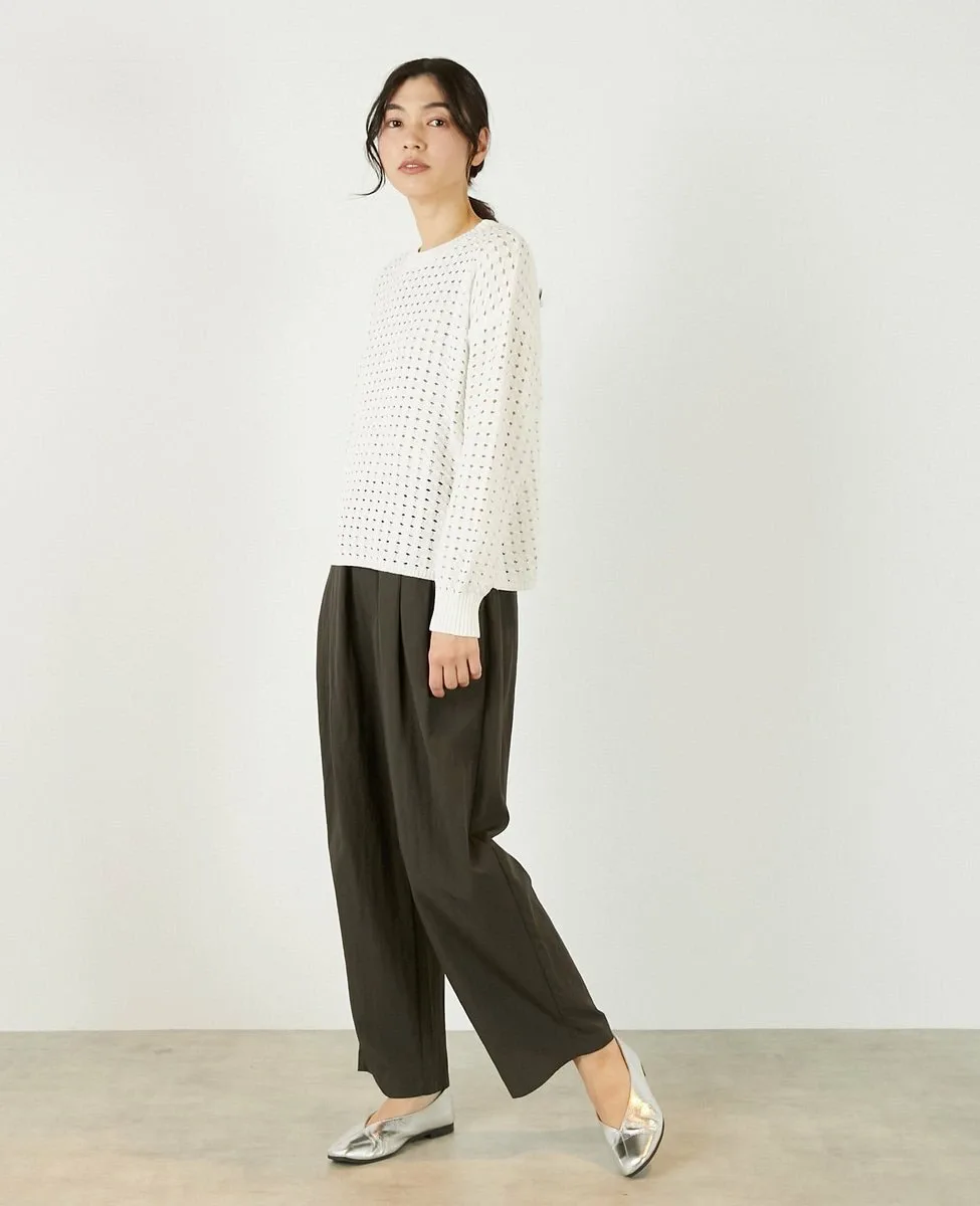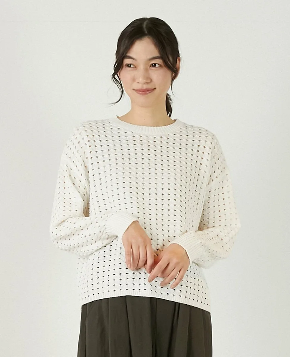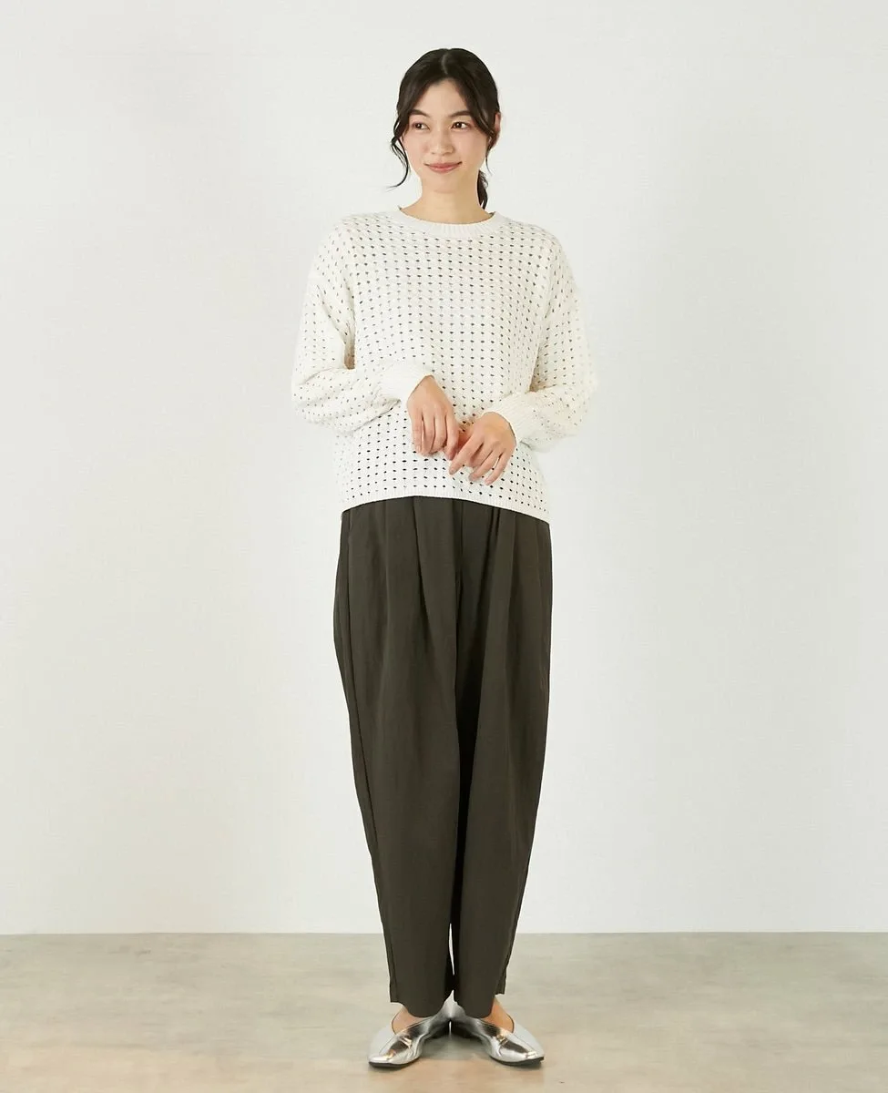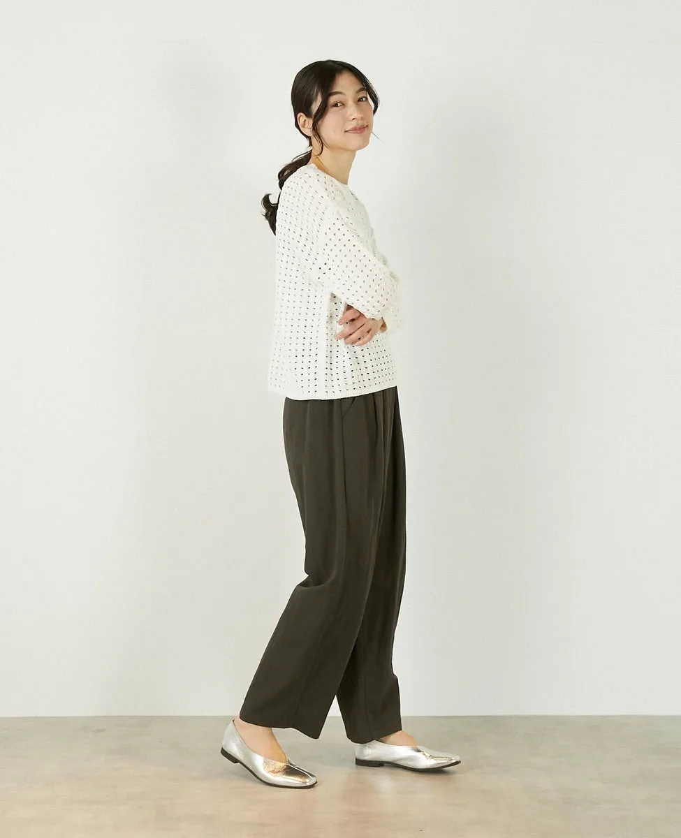 Это слегка непрозрачное, фактурное вязаное полотно с ажурным узором выполнено из пряжи Lily, обладающей элегантным, едва заметным блеском. Сочетайте его с футболкой или блузкой с длинными рукавами для создания идеального весеннего образа.
