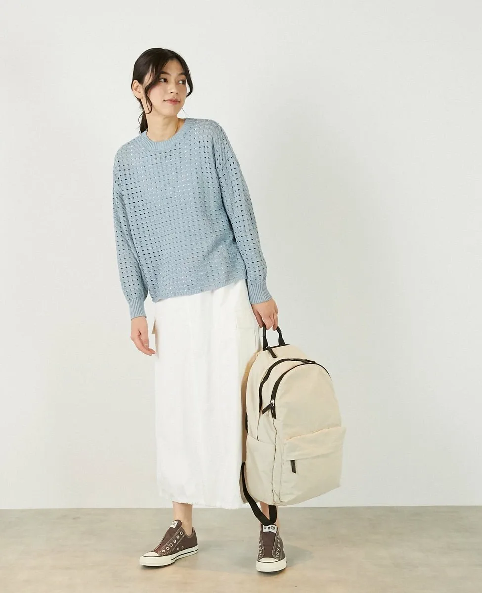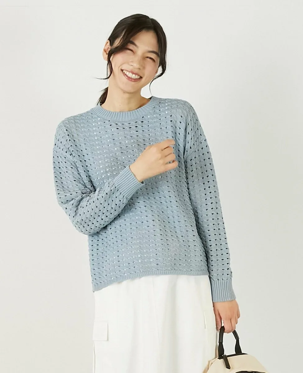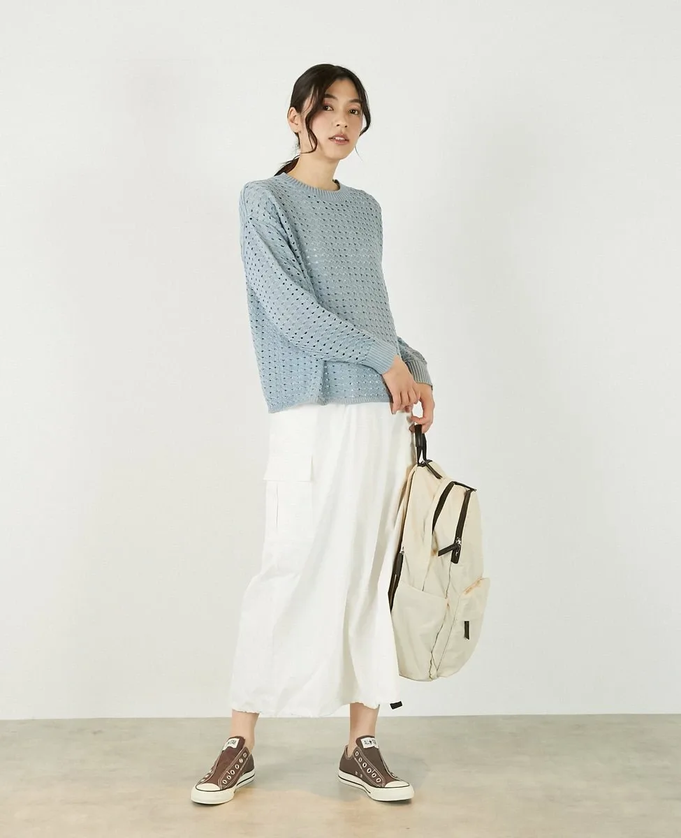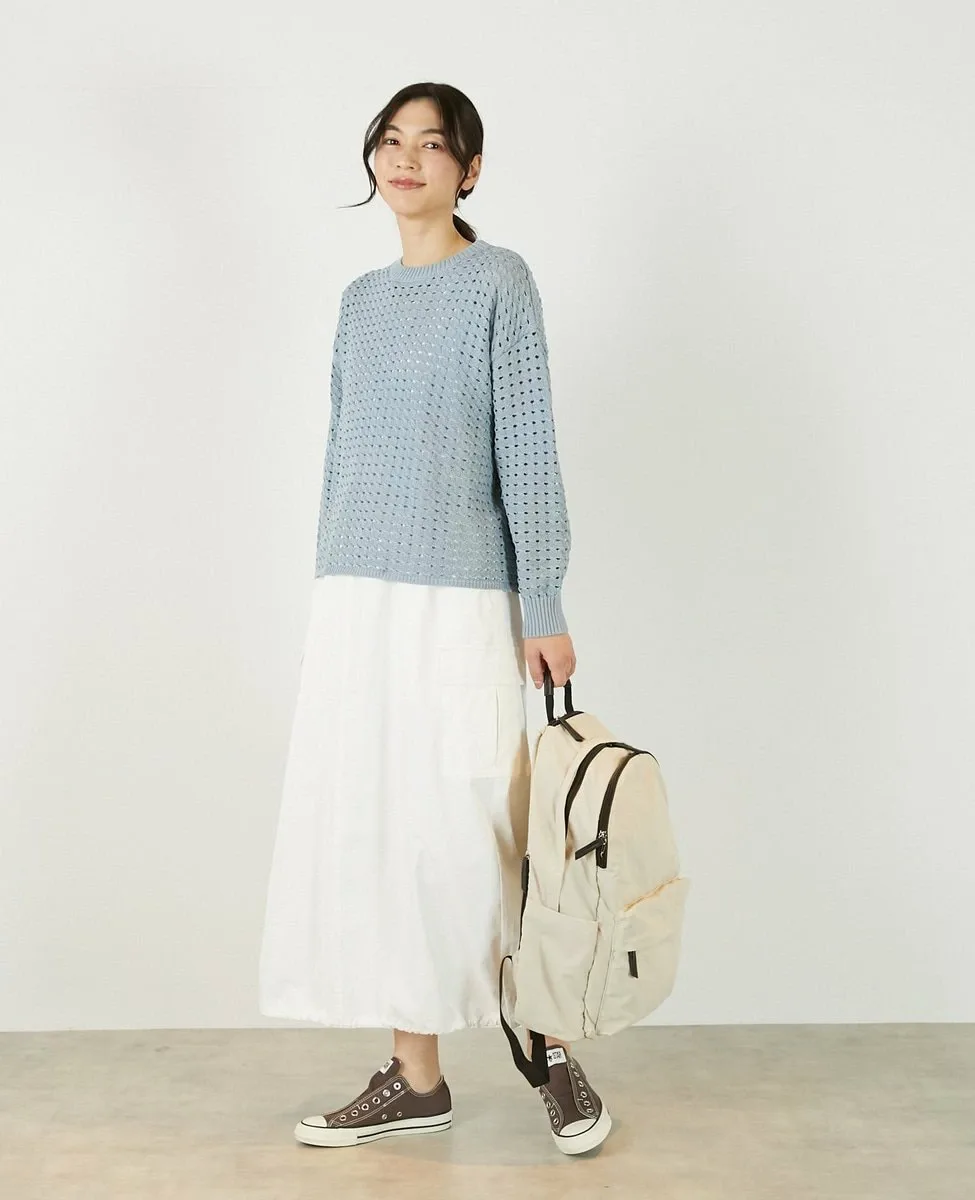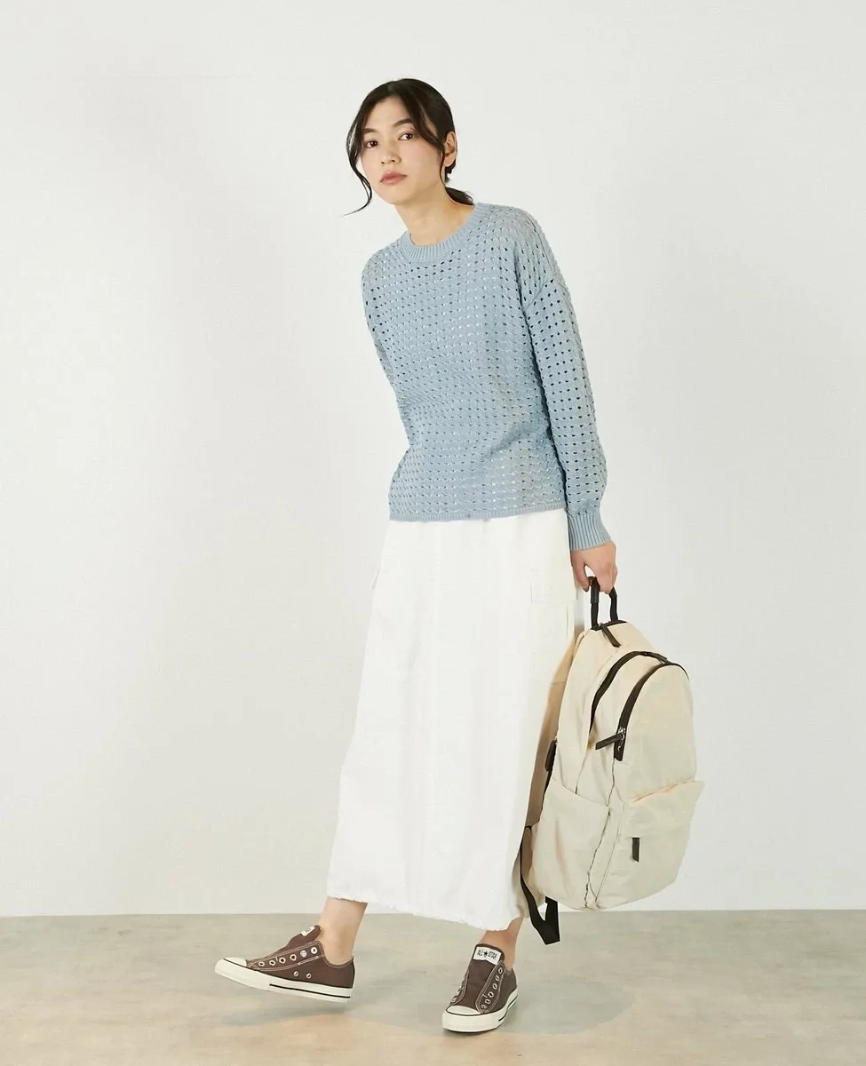 Это слегка непрозрачное, фактурное вязаное полотно с ажурным узором выполнено из пряжи Lily, обладающей элегантным, едва заметным блеском. Сочетайте его с футболкой или блузкой с длинными рукавами для создания идеального весеннего образа.