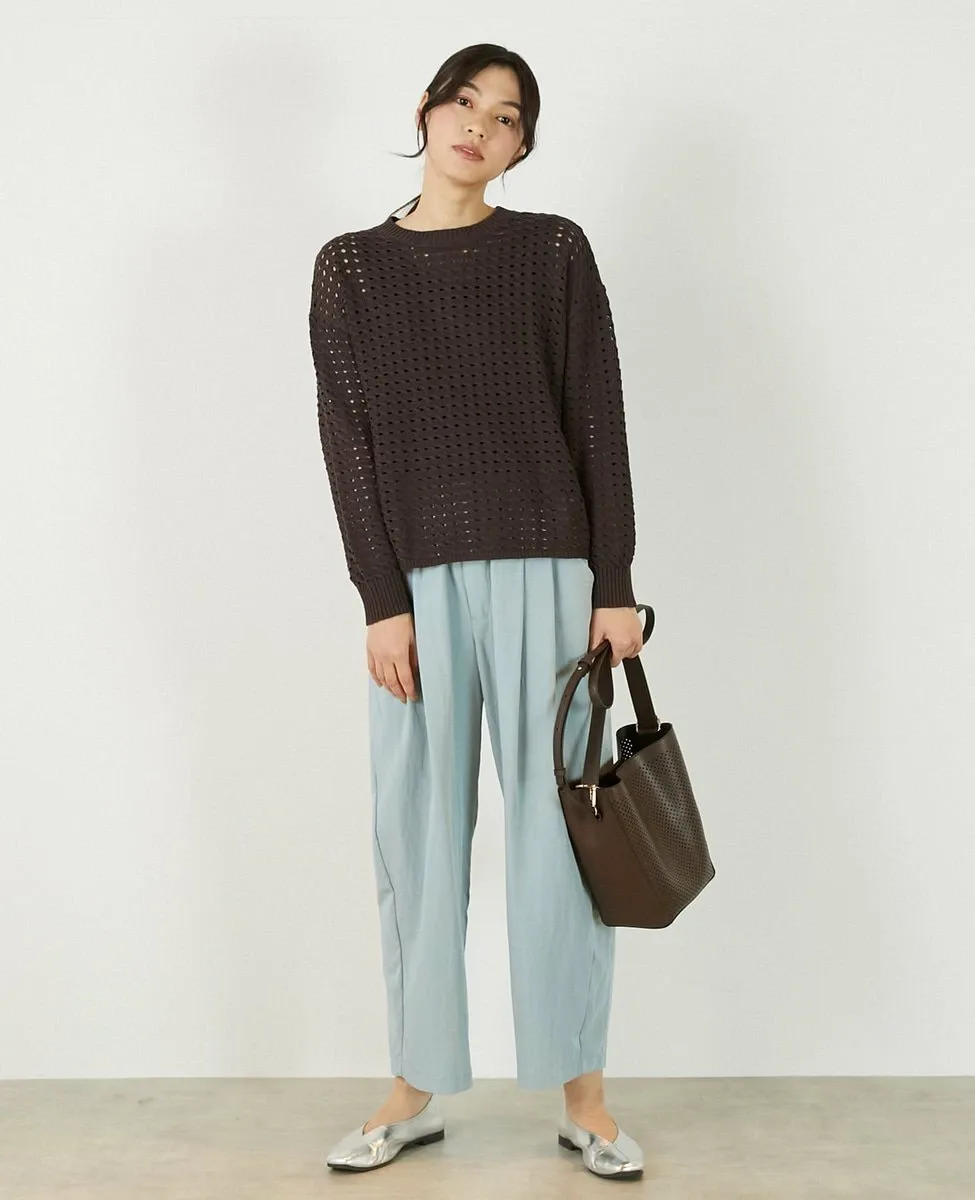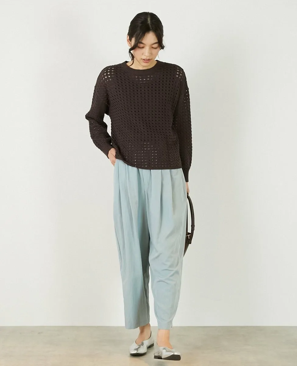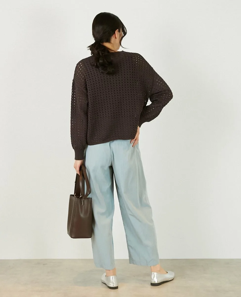 Это слегка непрозрачное, фактурное вязаное полотно с ажурным узором выполнено из пряжи Lily, обладающей элегантным, едва заметным блеском. Сочетайте его с футболкой или блузкой с длинными рукавами для создания идеального весеннего образа.