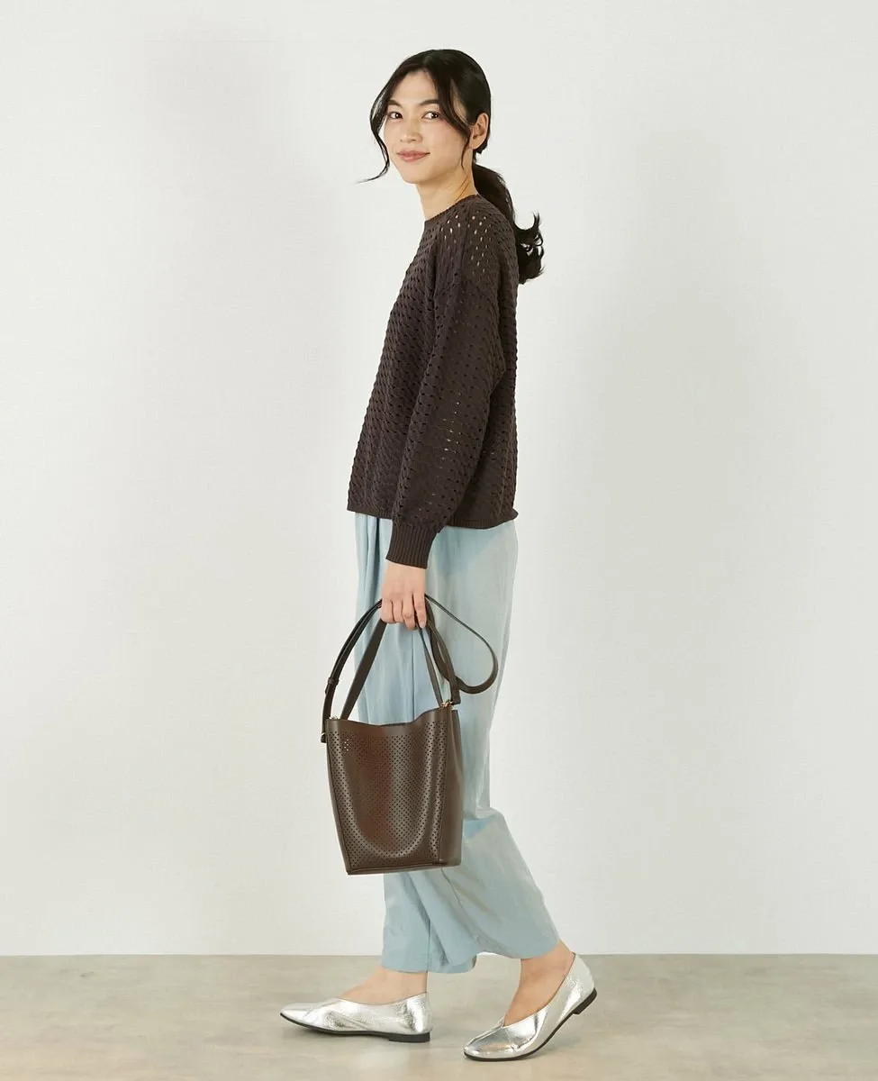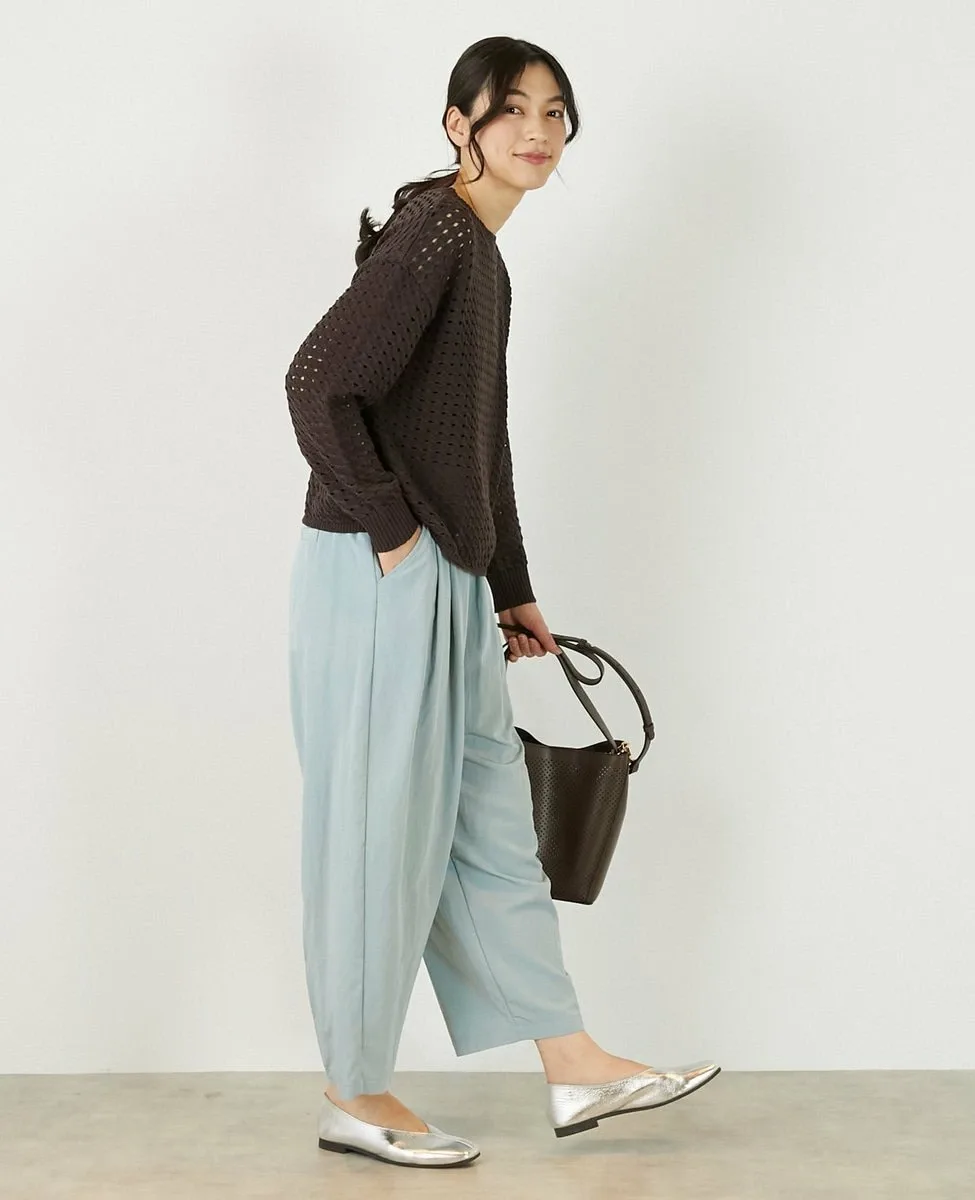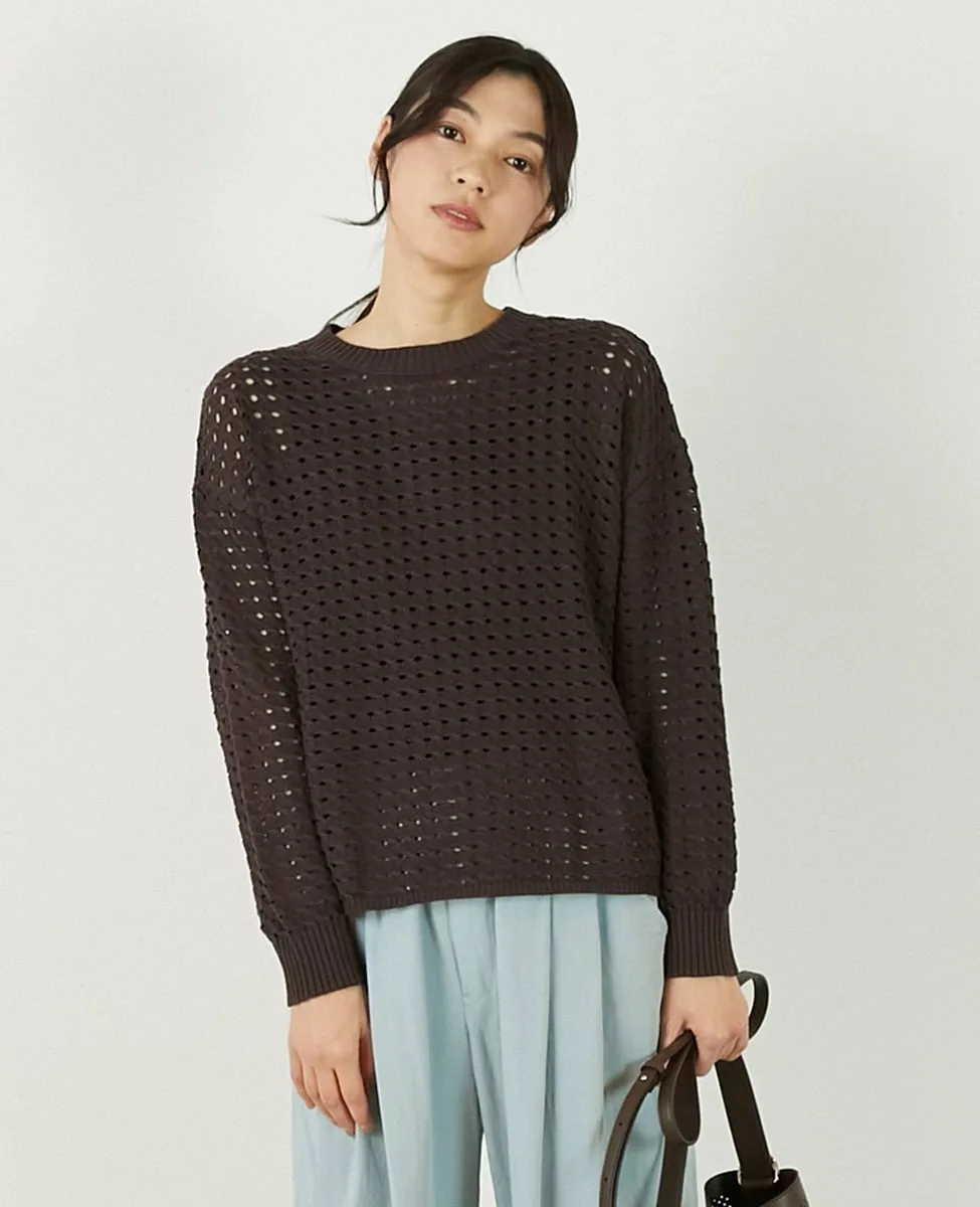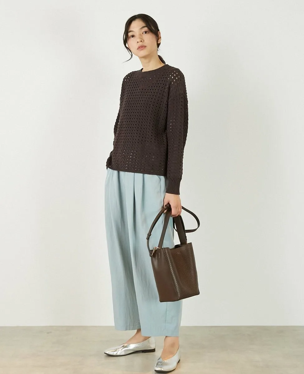 Это слегка непрозрачное, фактурное вязаное полотно с ажурным узором выполнено из пряжи Lily, обладающей элегантным, едва заметным блеском. Сочетайте его с футболкой или блузкой с длинными рукавами для создания идеального весеннего образа.