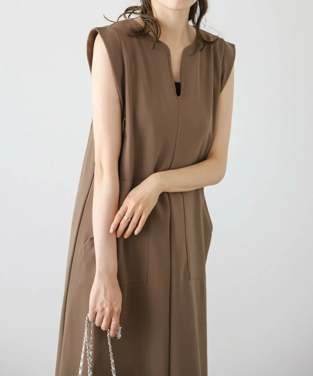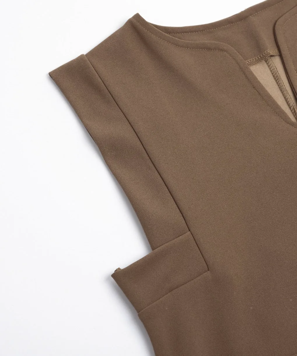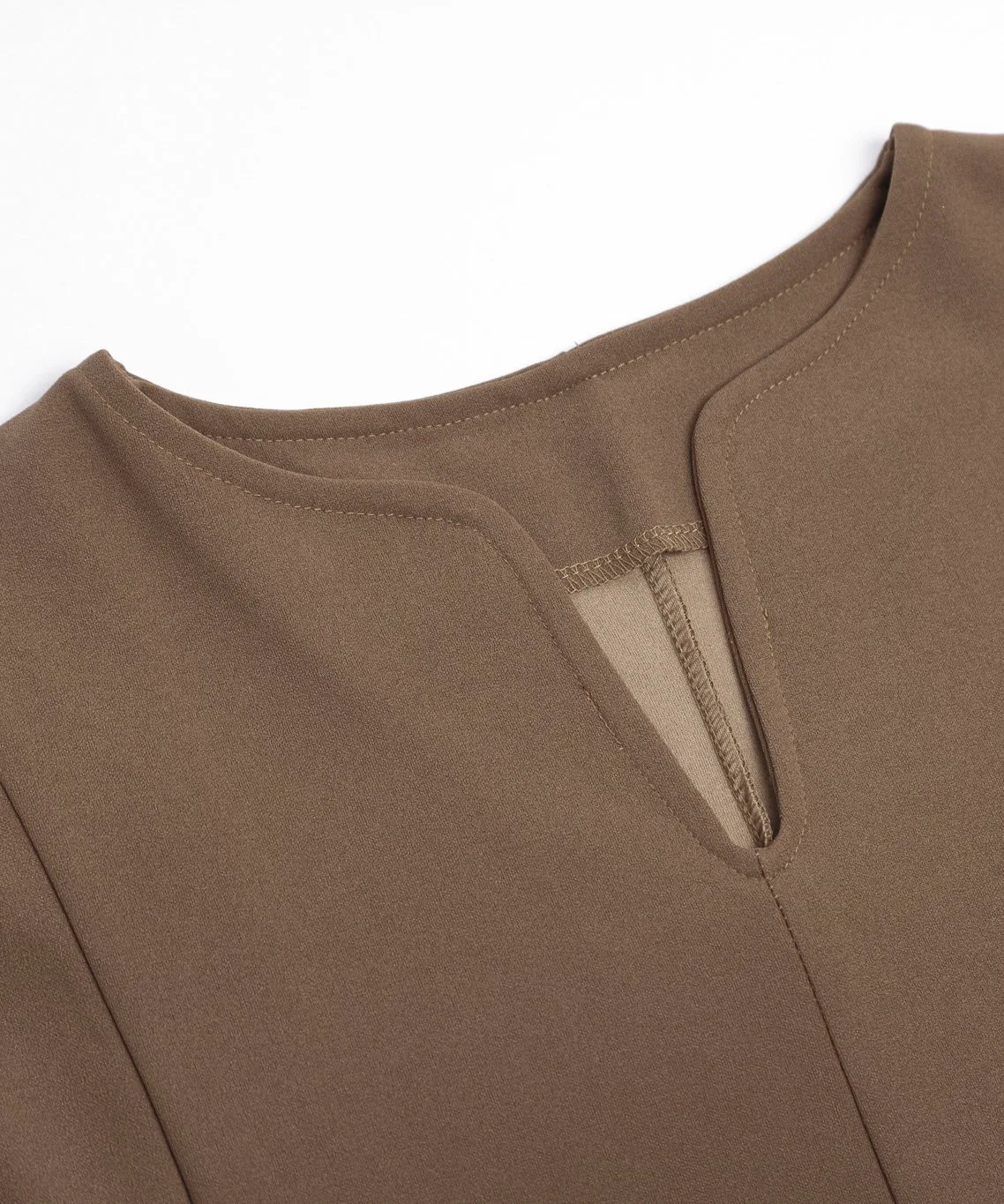 Вырез-«замочная сквадка» придает шее аккуратный вид, создавая ощущение расслабленности, а А-образный силуэт, плавно расширяющийся к подолу, создает элегантное впечатление.
