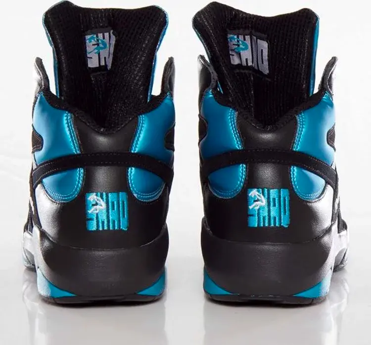 Первая фирменная обувь Шакила О’Нила, Reebok Shaq Attaq, была выпущена в 1992 году всего в двух цветовых решениях, вдохновленных Orlando Magic. «Выездная» версия вернулась на прилавки магазинов в августе 2013 года и отличалась черной отделкой в тон комбинированному верху из нубука и кожи. Контрастные всполохи лазурного синего цвета появляются на мягком воротнике и кнопке Pump в форме баскетбольного мяча на язычке, а логотип Shaq Dunkman украшает пятку.