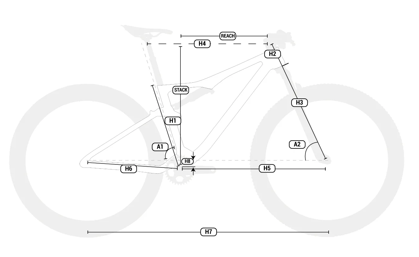 Stack - вертикальное расстояние от центра каретки до верхней точки рулевой трубы: 598,1