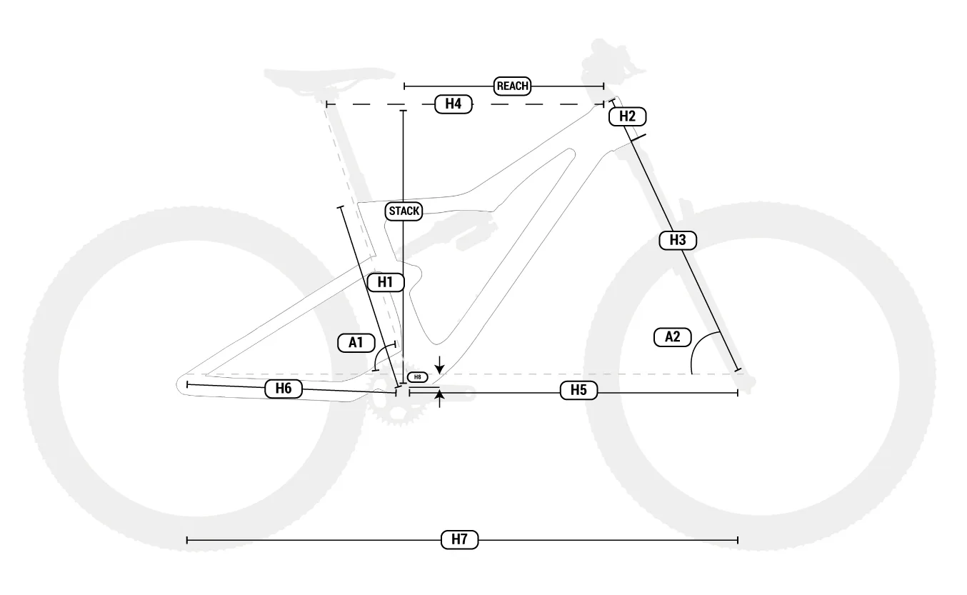 Stack - вертикальное расстояние от центра каретки до верхней точки рулевой трубы: 610,1