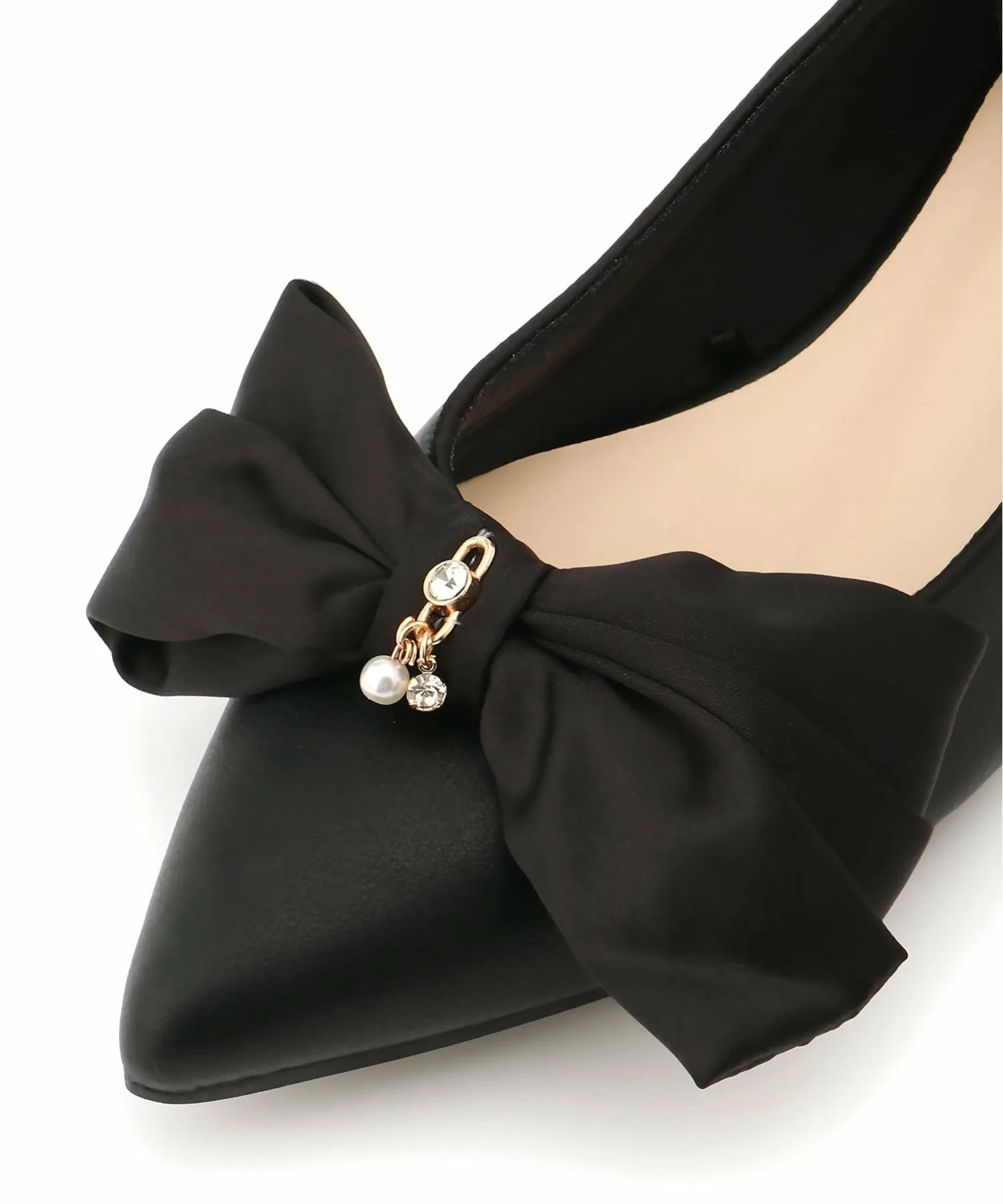 Свисающие стразы и жемчужные украшения в центре ленты добавляют гламурный акцент.