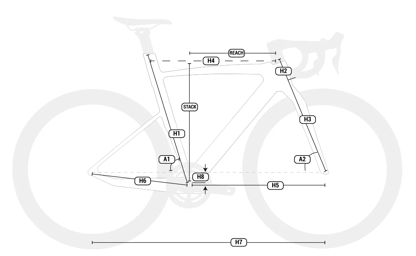 Stack - вертикальное расстояние от центра каретки до верхней точки рулевой трубы: 539