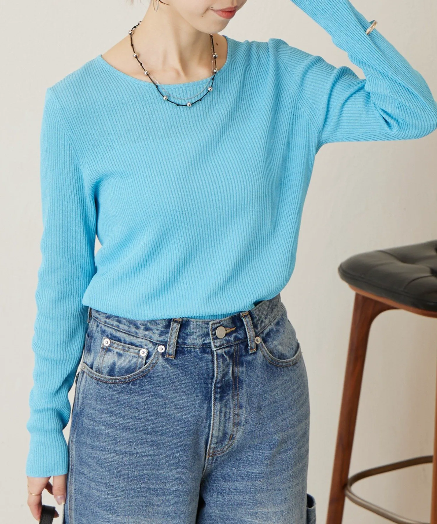 Умеренно открытый вырез горловины придает зоне декольте аккуратный вид, создавая расслабленный образ.