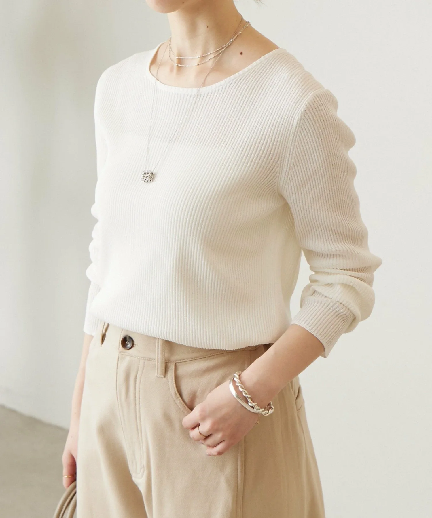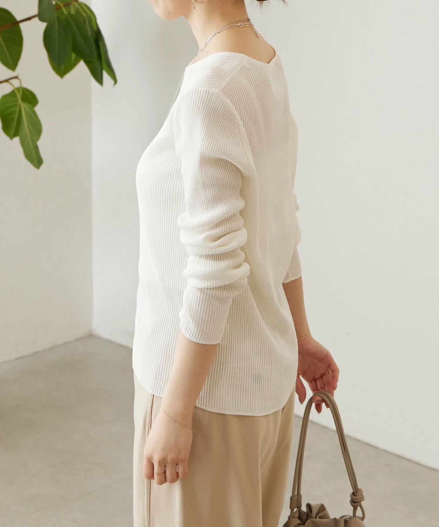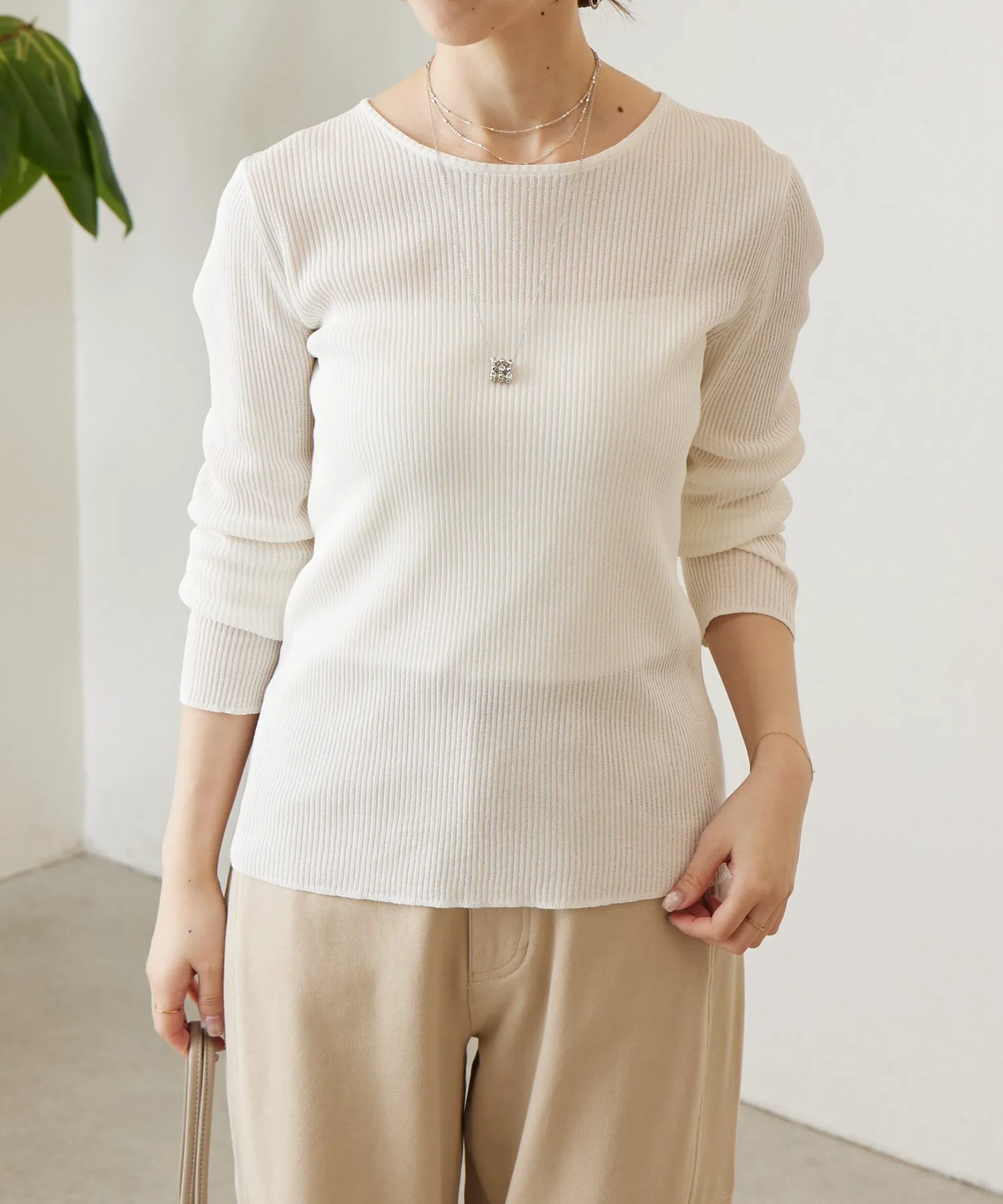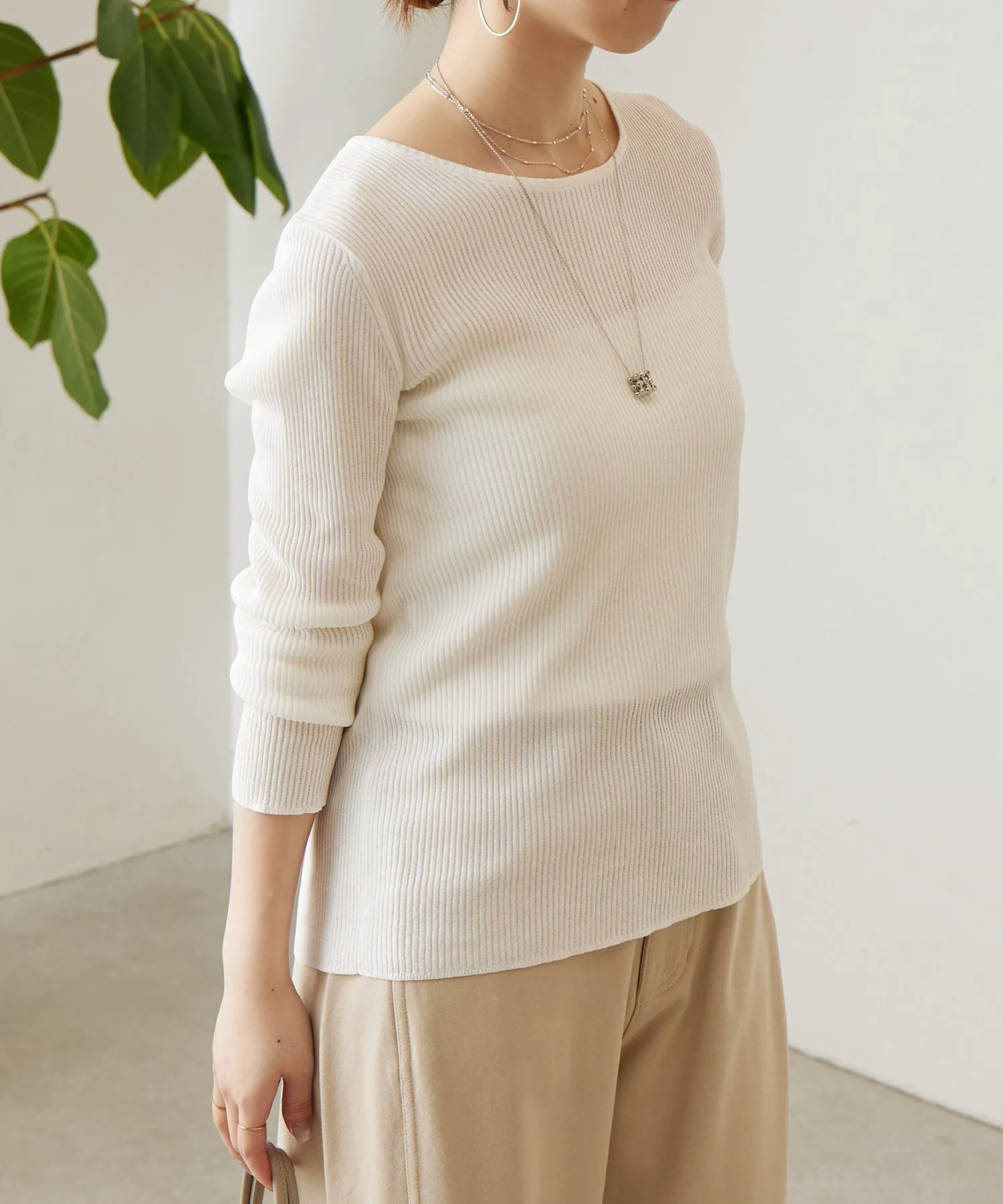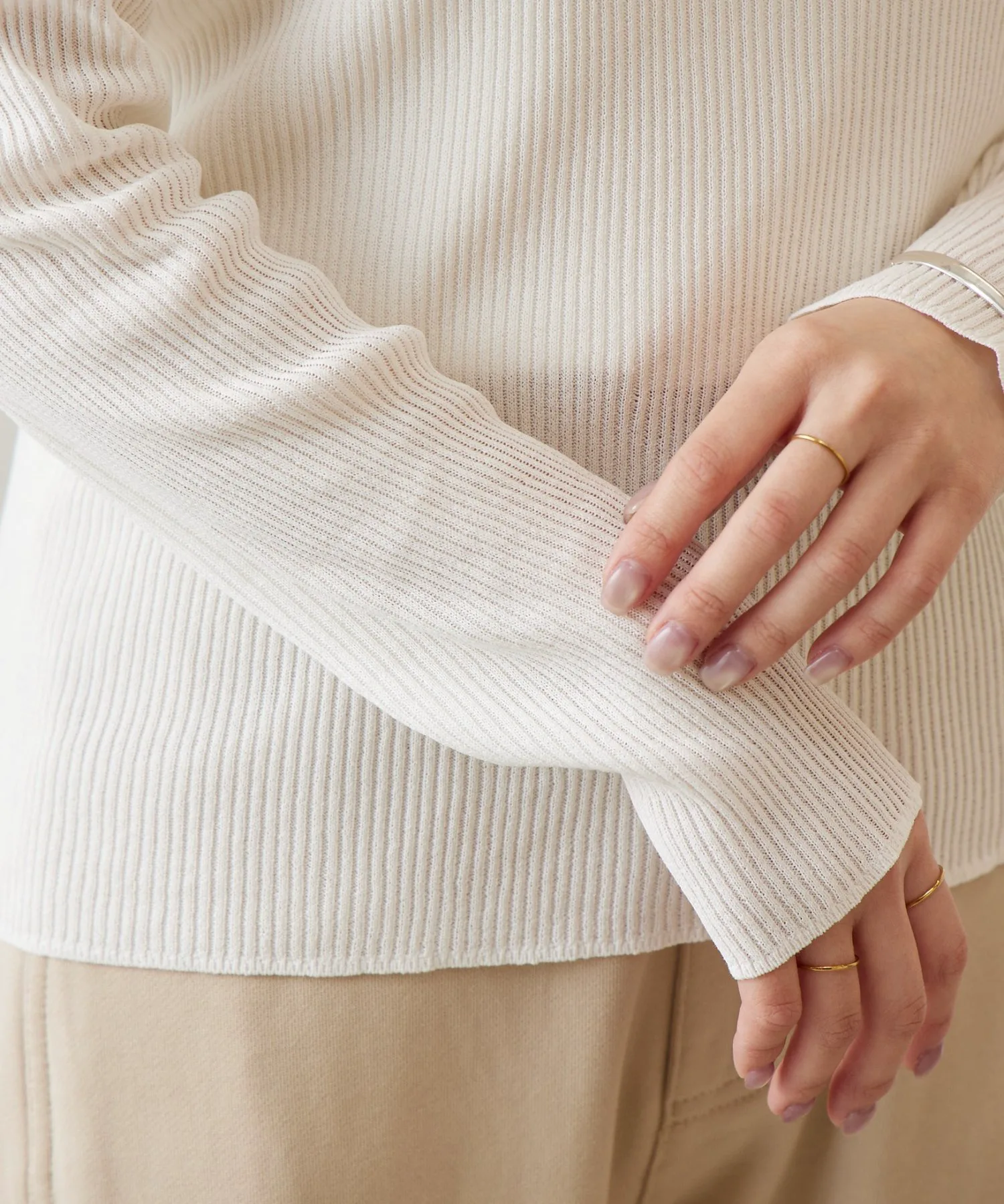Вязаный трикотаж в рубчик, приятный на ощупь и прохладный.