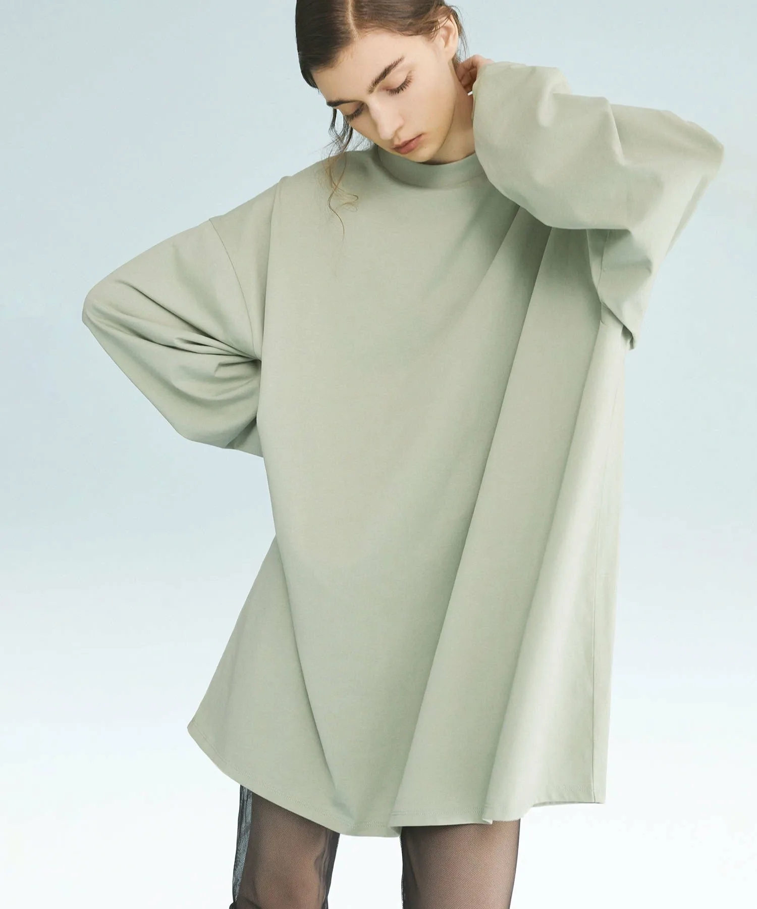 Длинная футболка свободного кроя, которую можно носить каждый день.Несмотря на свободный крой, облегающий силуэт создает женственный образ.Также можно носить как платье, сочетая с обтягивающими брюками или колготками.Вы также можете создать стильный образ, сочетая ее с шортами или длинной юбкой I-силуэта.