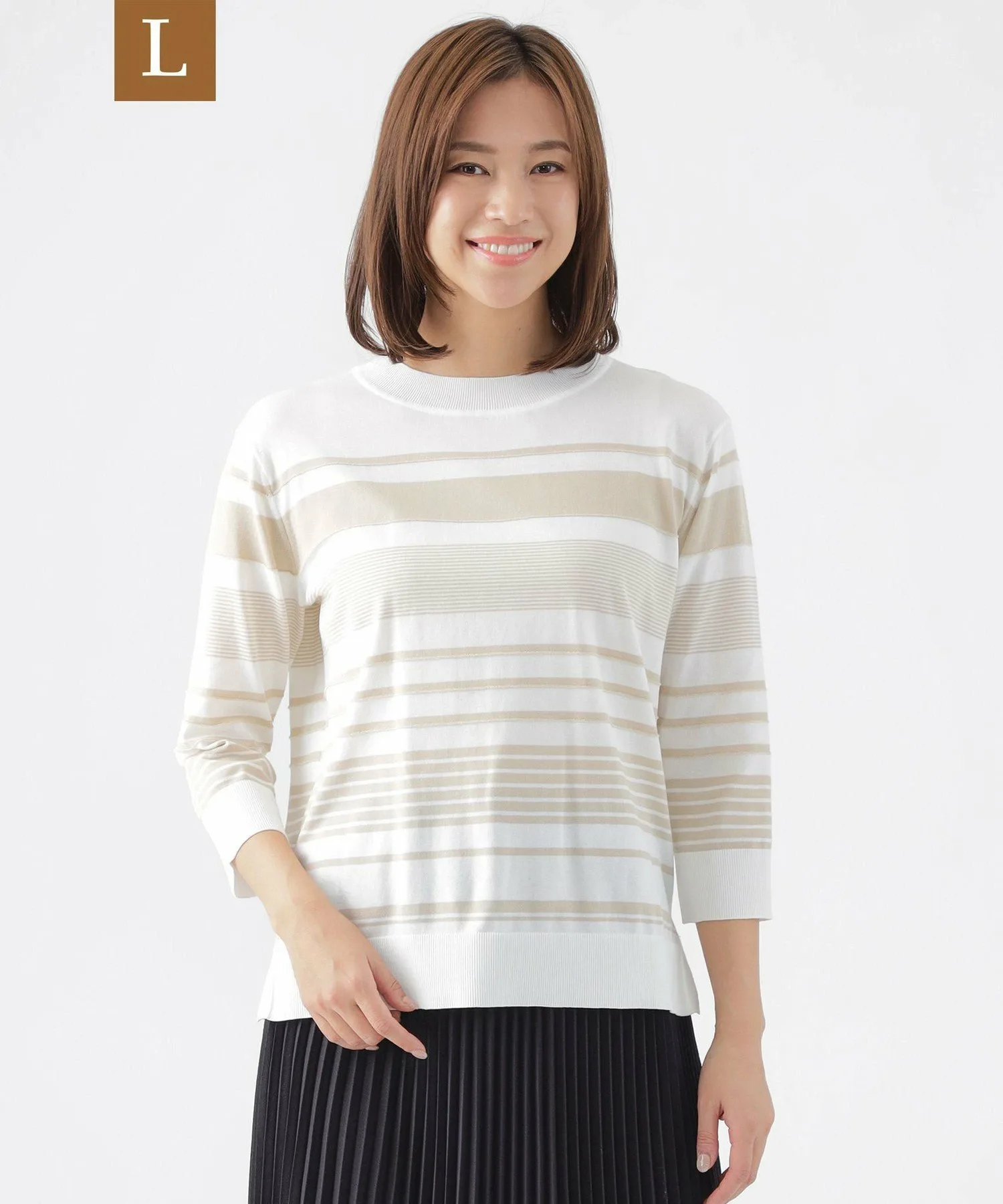 Эта трикотажная ткань имеет произвольную кайму, с однотонными участками на воротнике, подоле и манжетах, а также блестящими люрексовыми нитями в некоторых местах для изысканного вида. Слегка открытый вырез горловины также является ключевой деталью. Хлопково-полиэстерный материал обладает оптимальной плотностью, создавая чистый, прямой силуэт, который не подчеркивает линии тела.