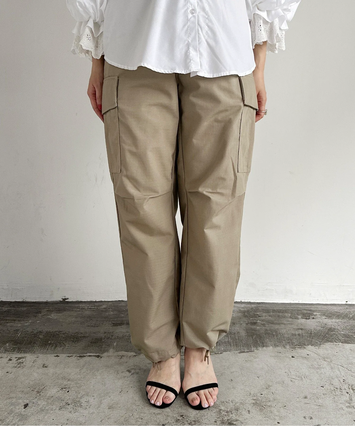 Шнурок внизу и боковые регуляторы на талии.