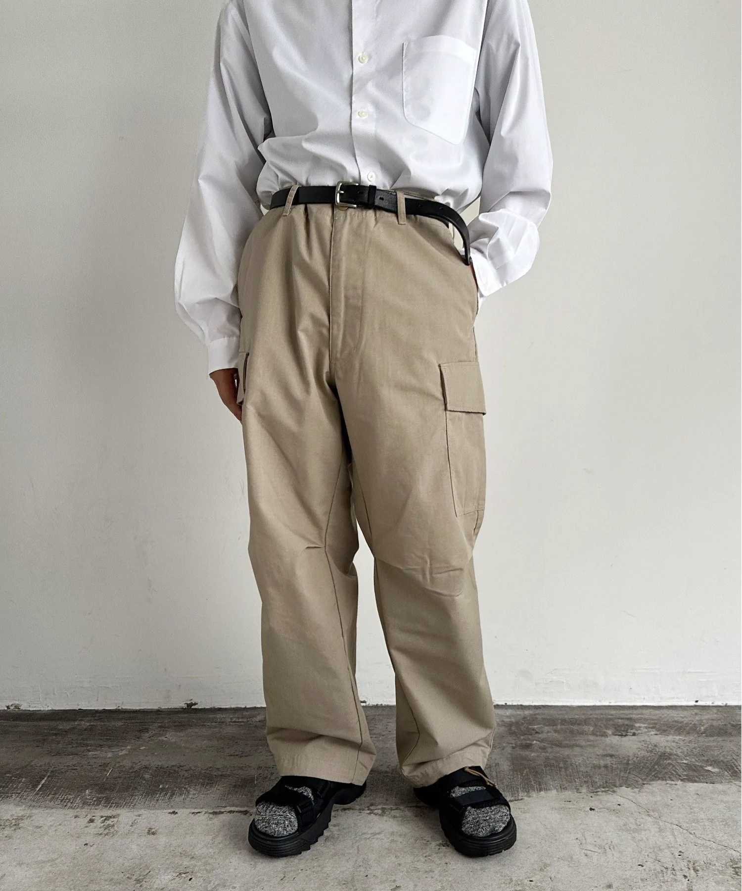 Штамп с шестью карманами и трехмерным, слегка широким силуэтом.