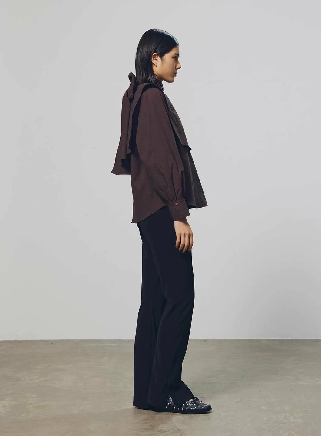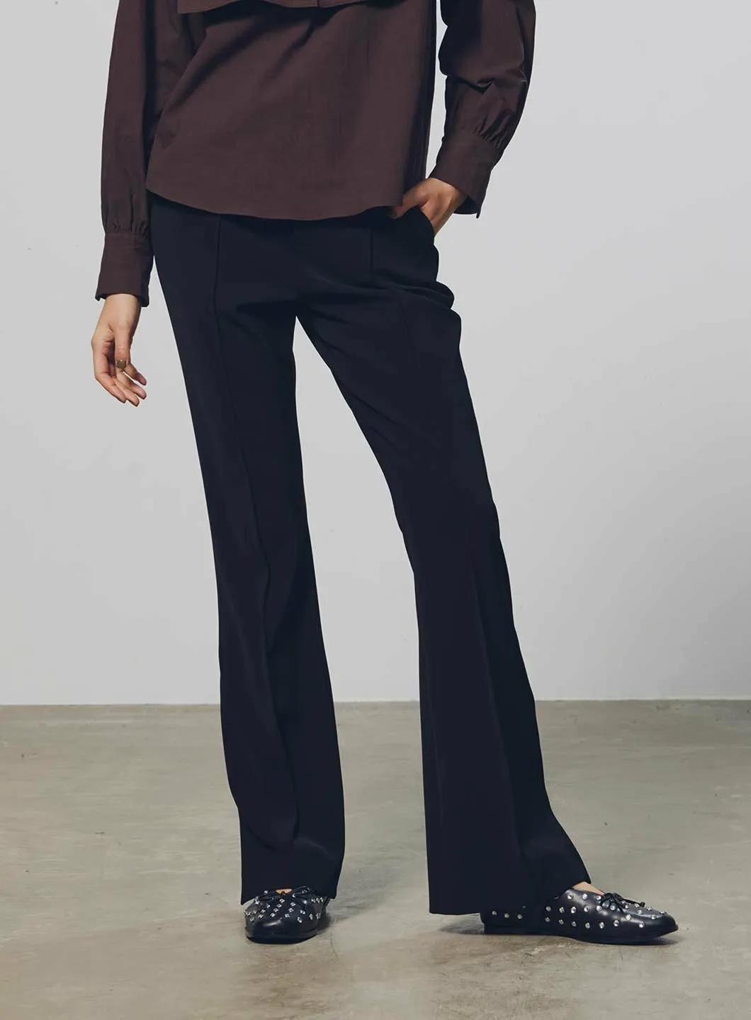 Дизайн Это классические брюки с разрезом спереди, переделанные в модели с боковыми разрезами. Они созданы для создания красивого расклешенного силуэта. Они также имеют полурасклешенную форму даже при застегнутом низе, поэтому вы можете менять силуэт в соответствии со своим стилем и случаем.