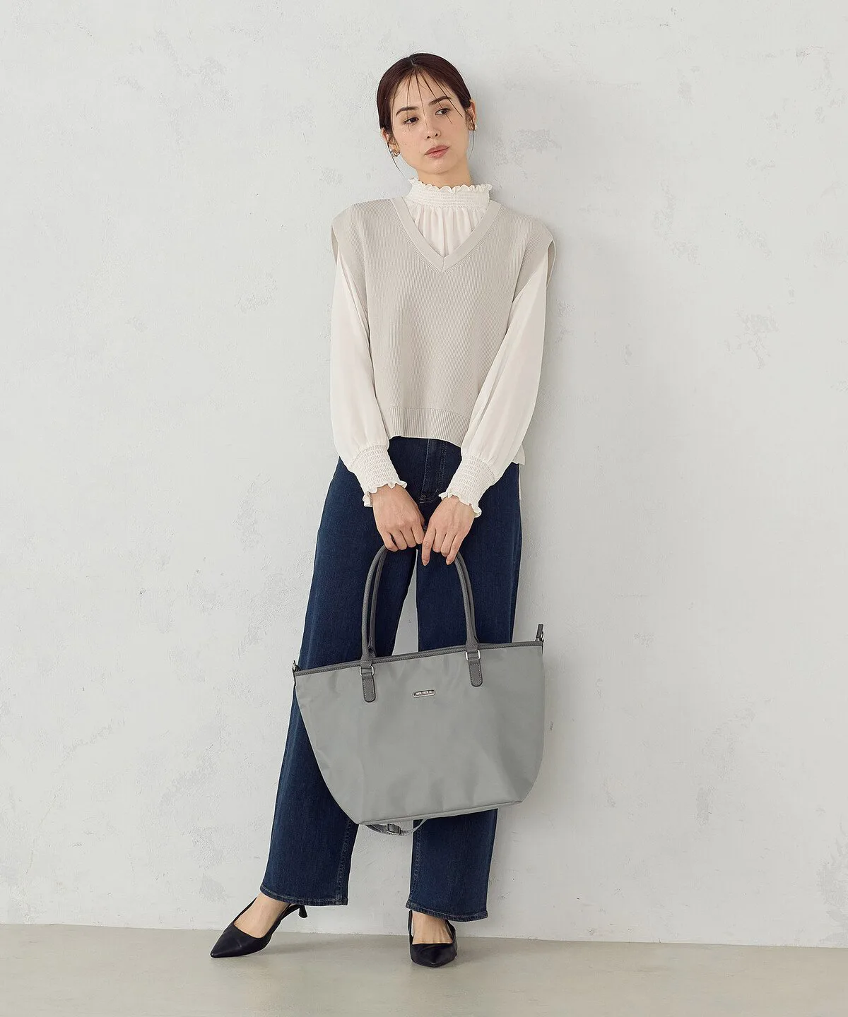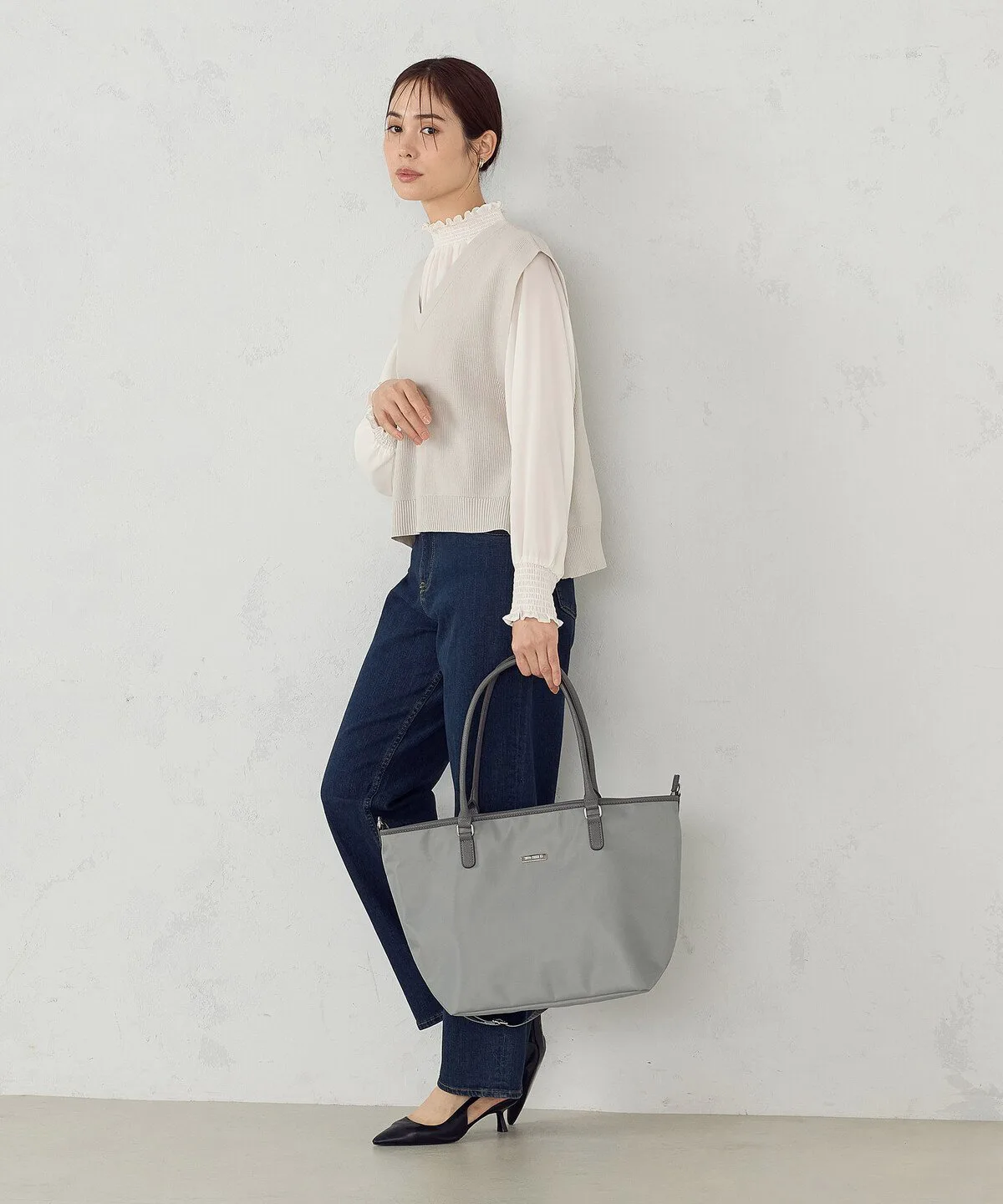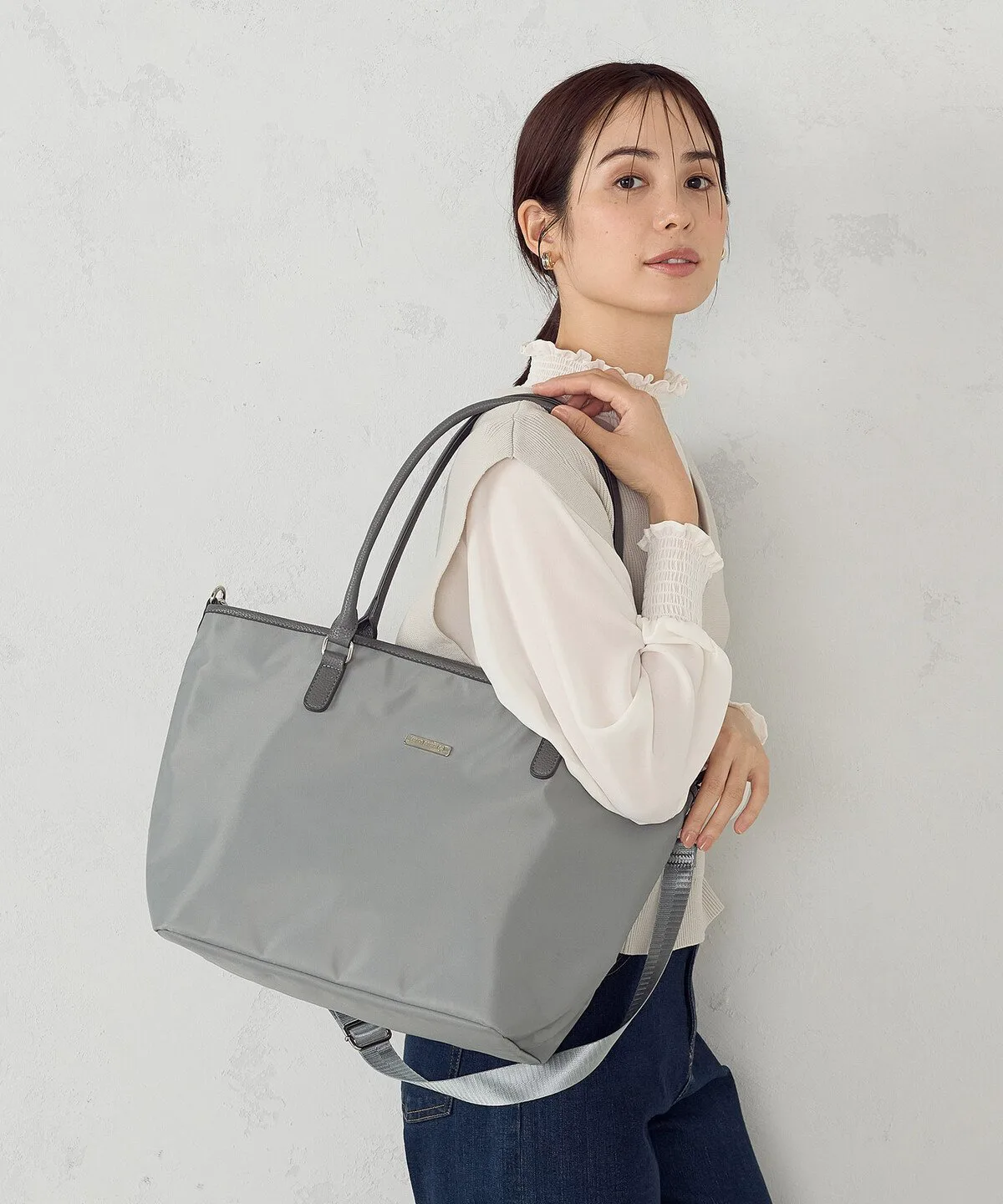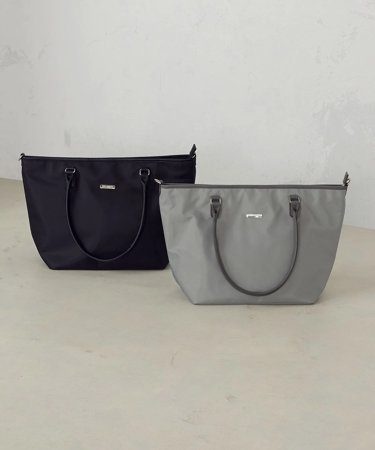 - Сумка-тоут из гладкого, блестящего нейлона.