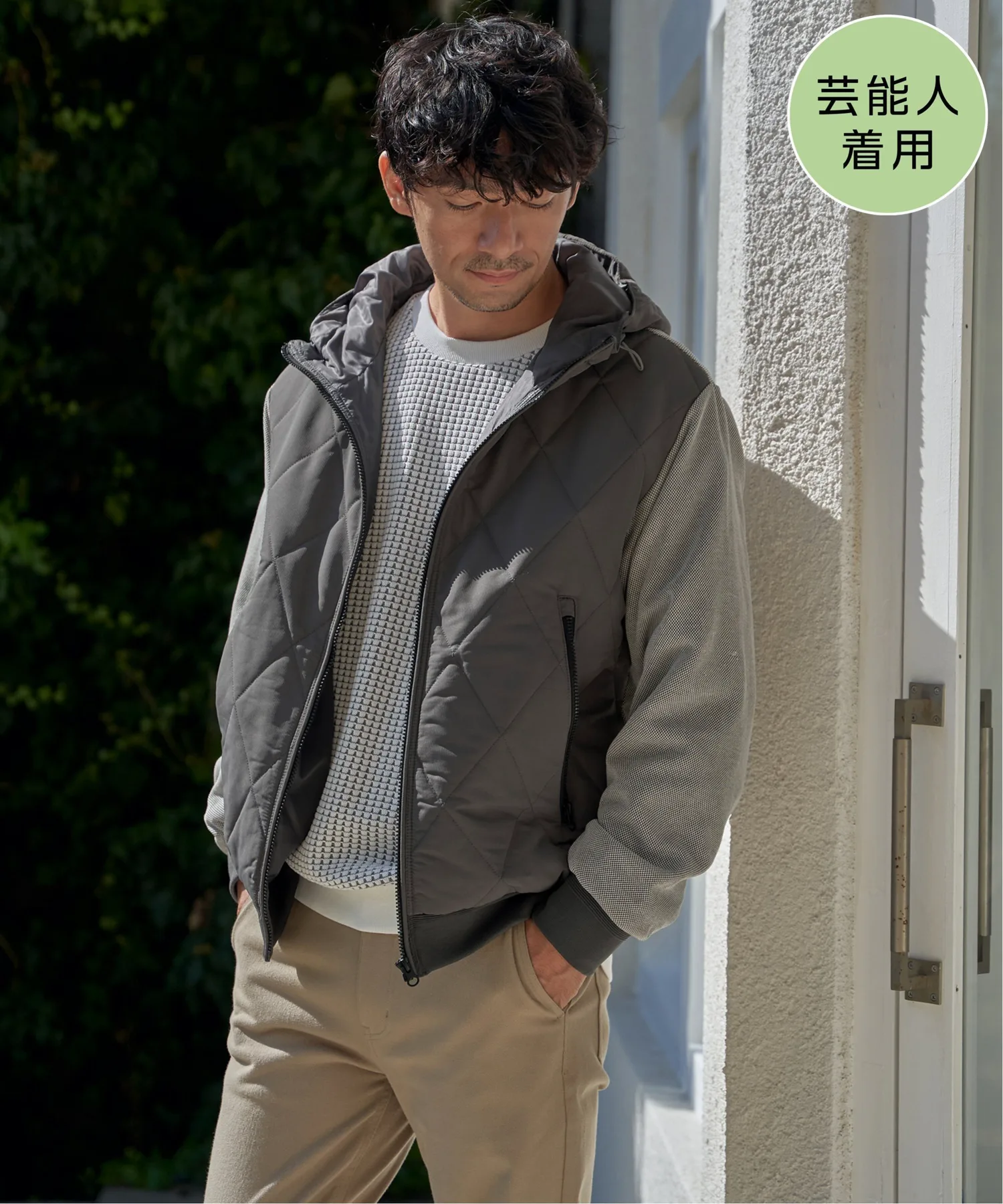 Комбинированная парка, изготовленная из различных материалов: тканый материал спереди и трикотаж сзади и на рукавах.