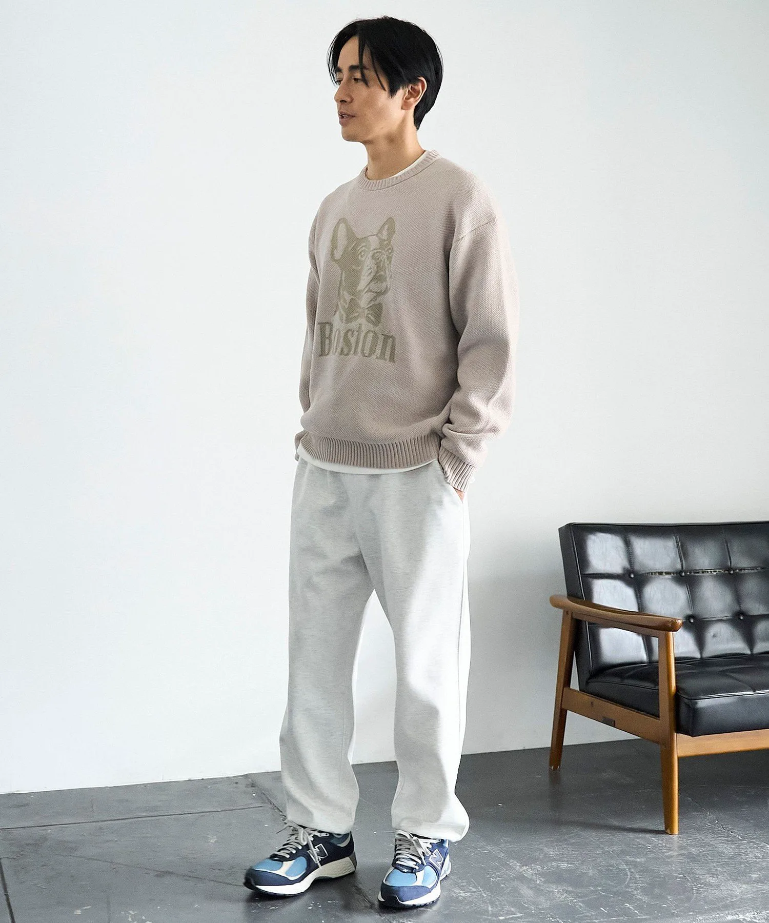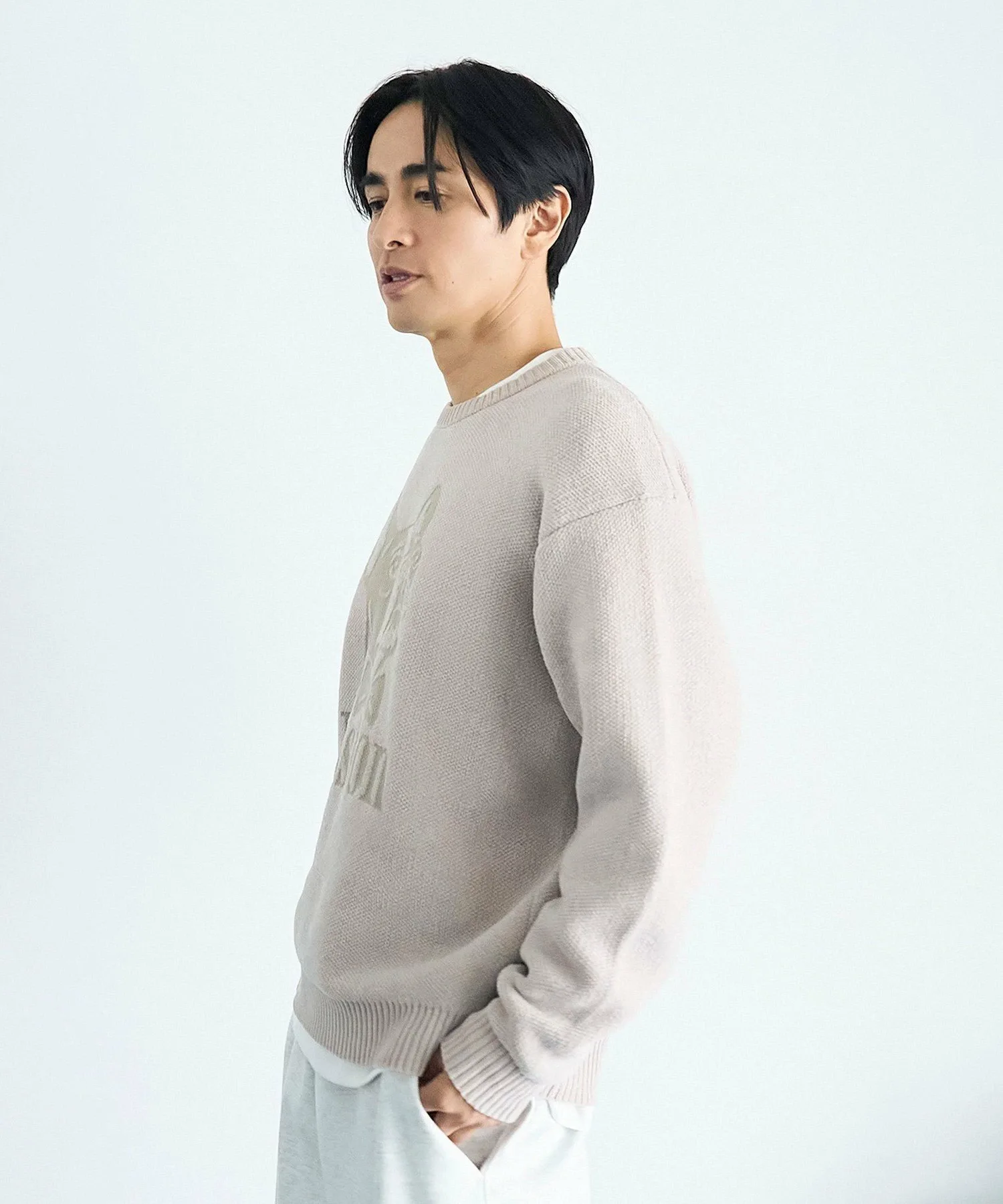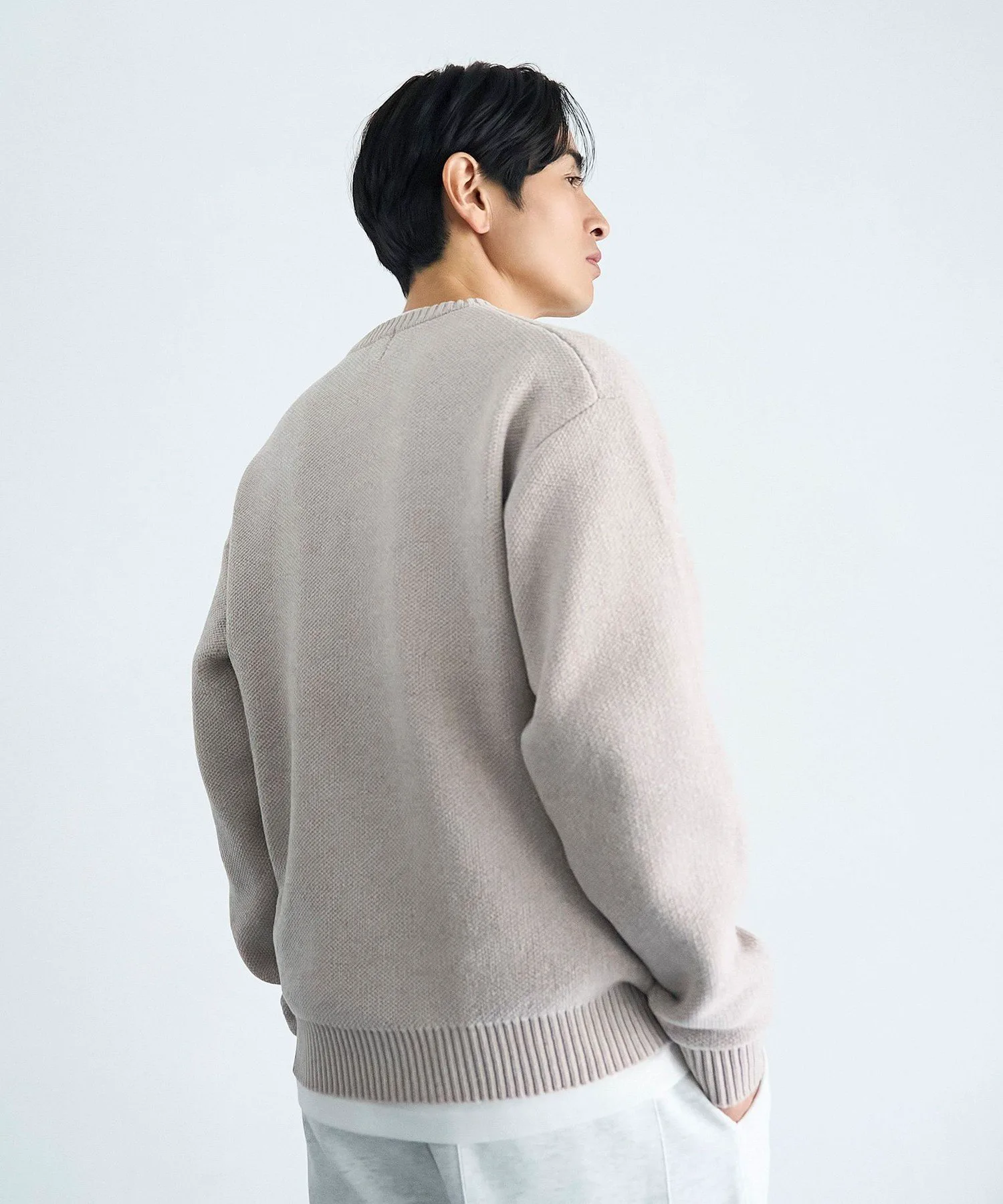 Этот трикотаж с круглым вырезом отличается простым, но уникальным жаккардовым узором, который привлекает внимание.