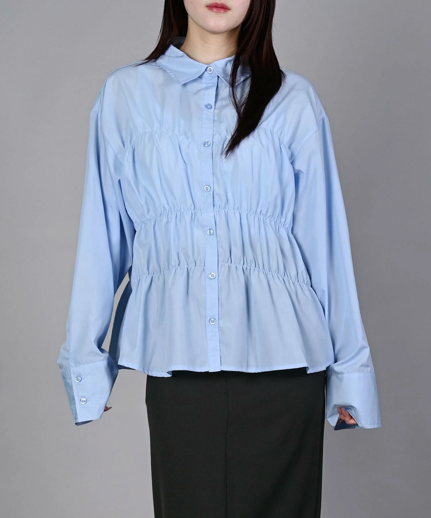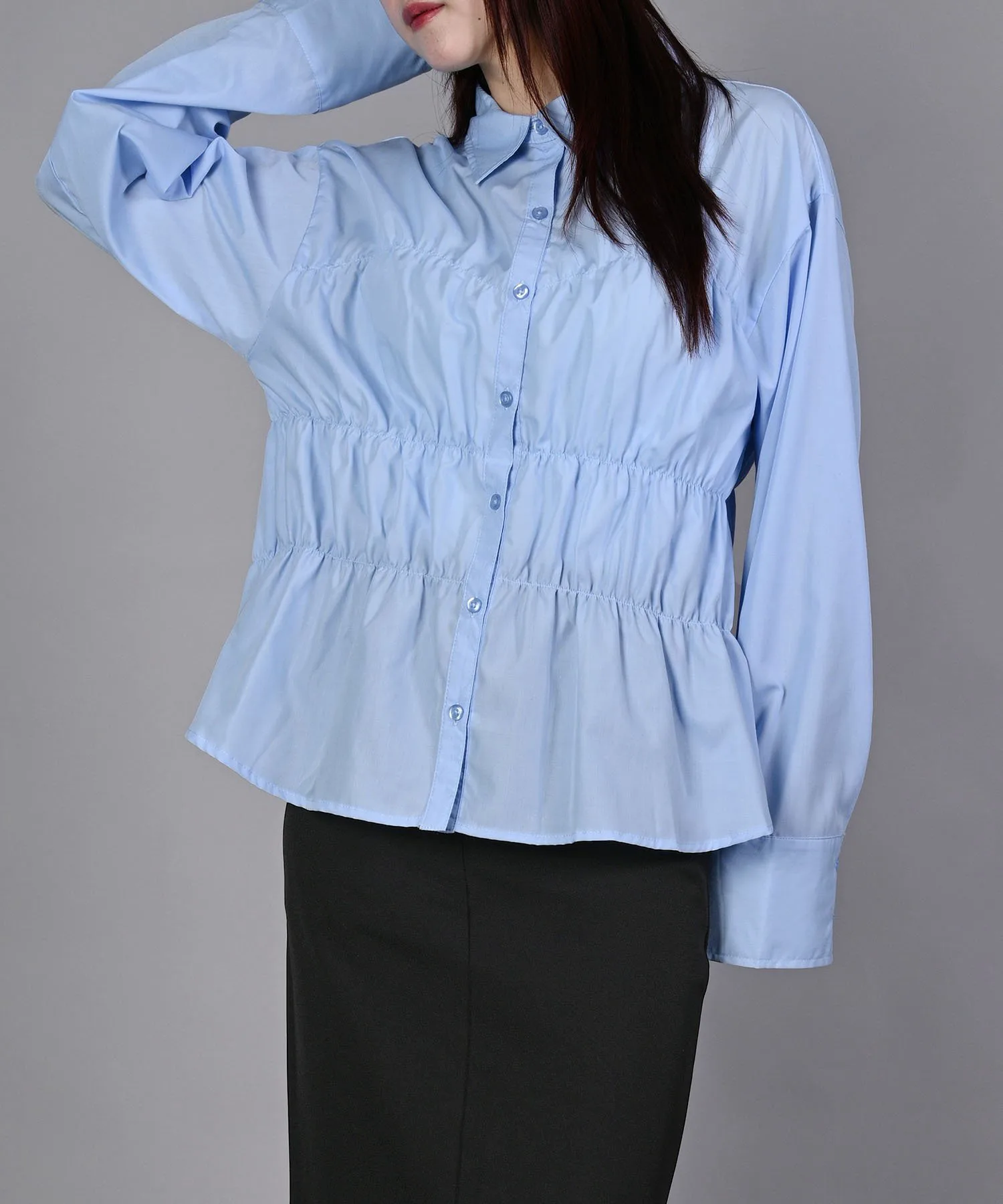 К этой рубашке с обычным воротником добавлен женственный присборенный дизайн.