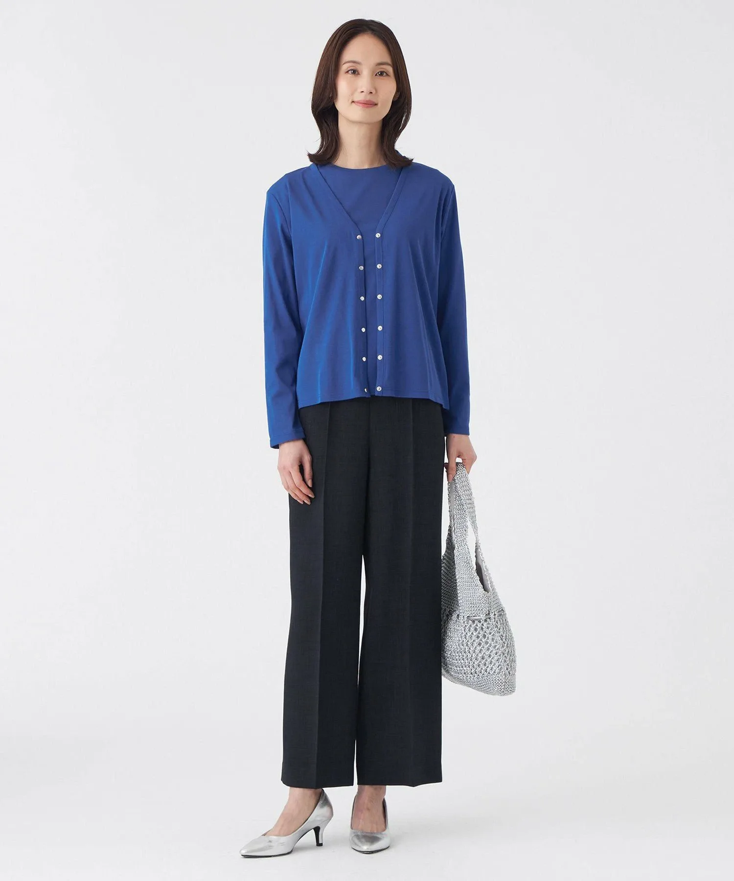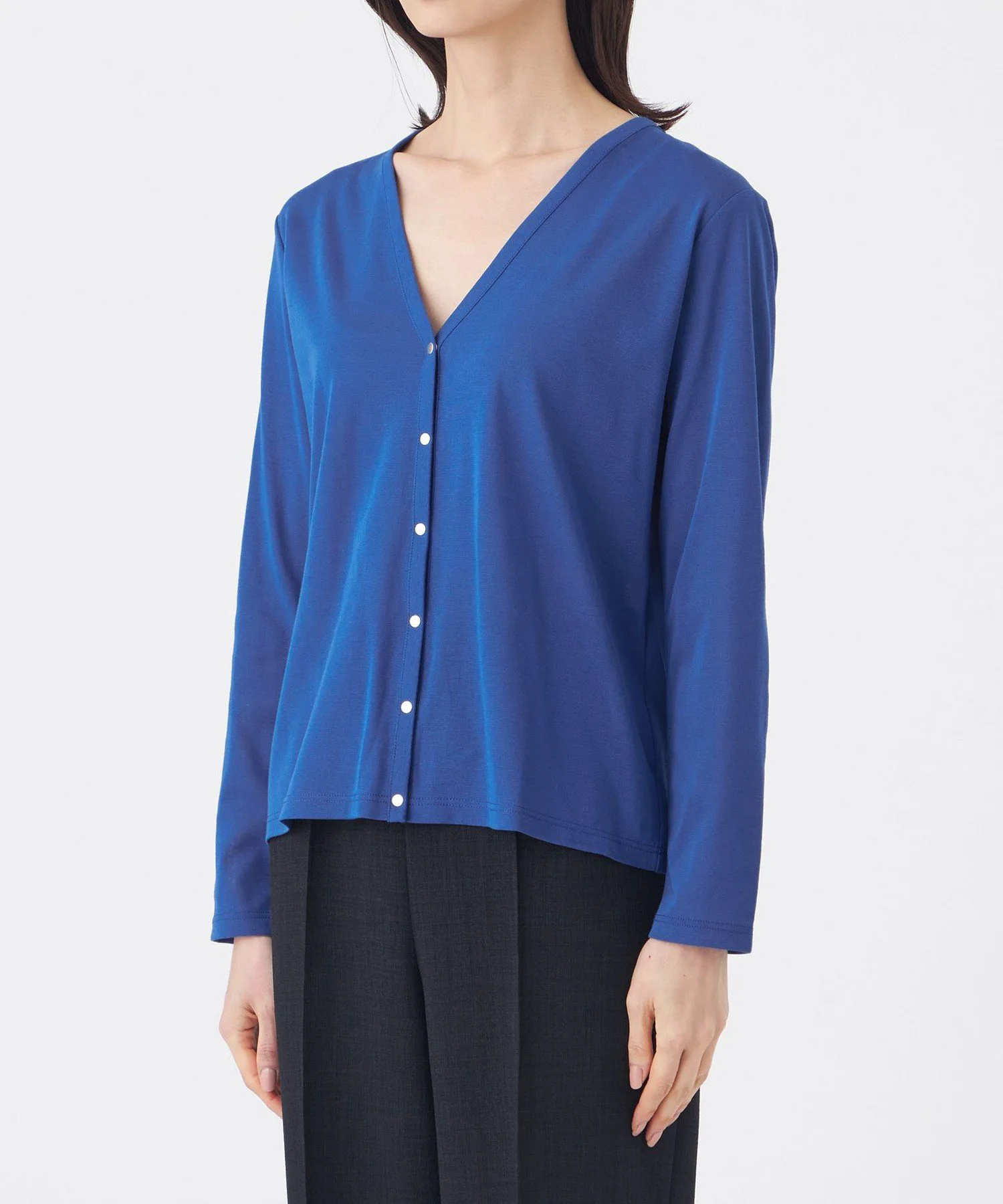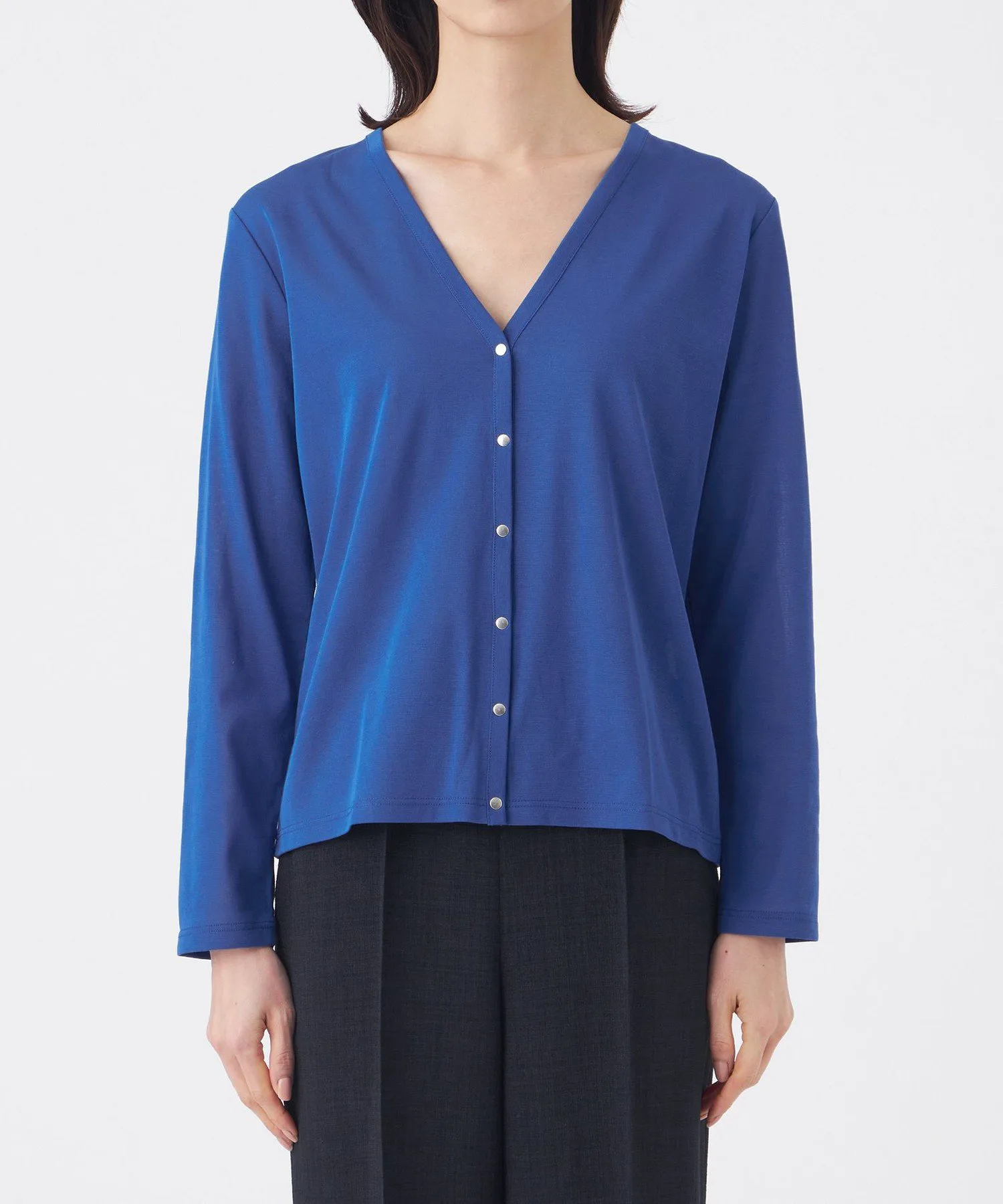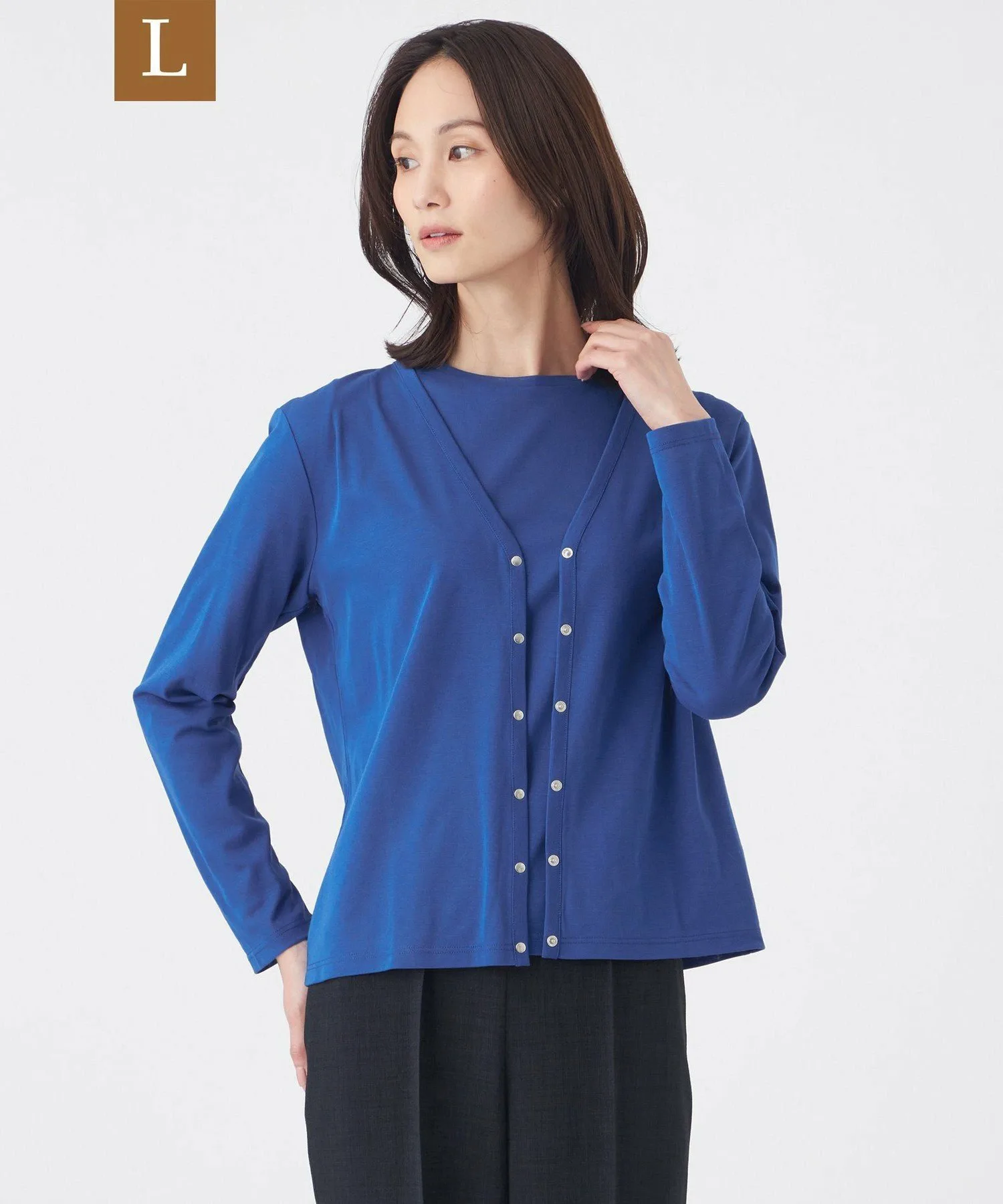 L Охлаждающий на ощупь・Можно стирать Хлопковый ребристый кардиган