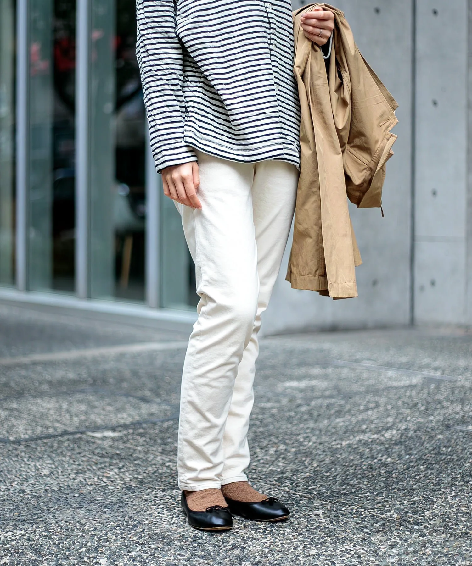◇ Отзыв о ношенииH160/Размер MДлина доходит до щиколоток, пояс свободный, эластичный. Трикотажная ткань мягкая и не ощущается жесткой на коже. Тепло ткани не влияет на силуэт, поэтому вам не нужно беспокоиться о том, что она будет выглядеть громоздкой. Узкий, зауженный силуэт позволяет легко сочетать эти брюки с платьями и длинными топами. ◎Доступные в базовых цветах, эти брюки идеально подходят для сочетания с рубашками с узорами и цветным трикотажем.