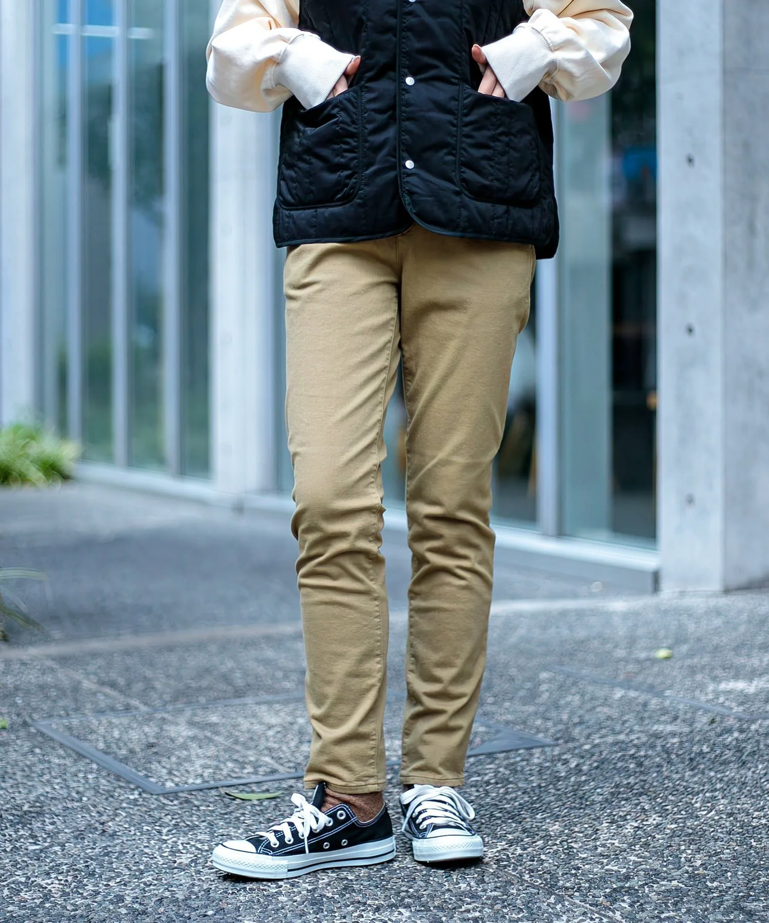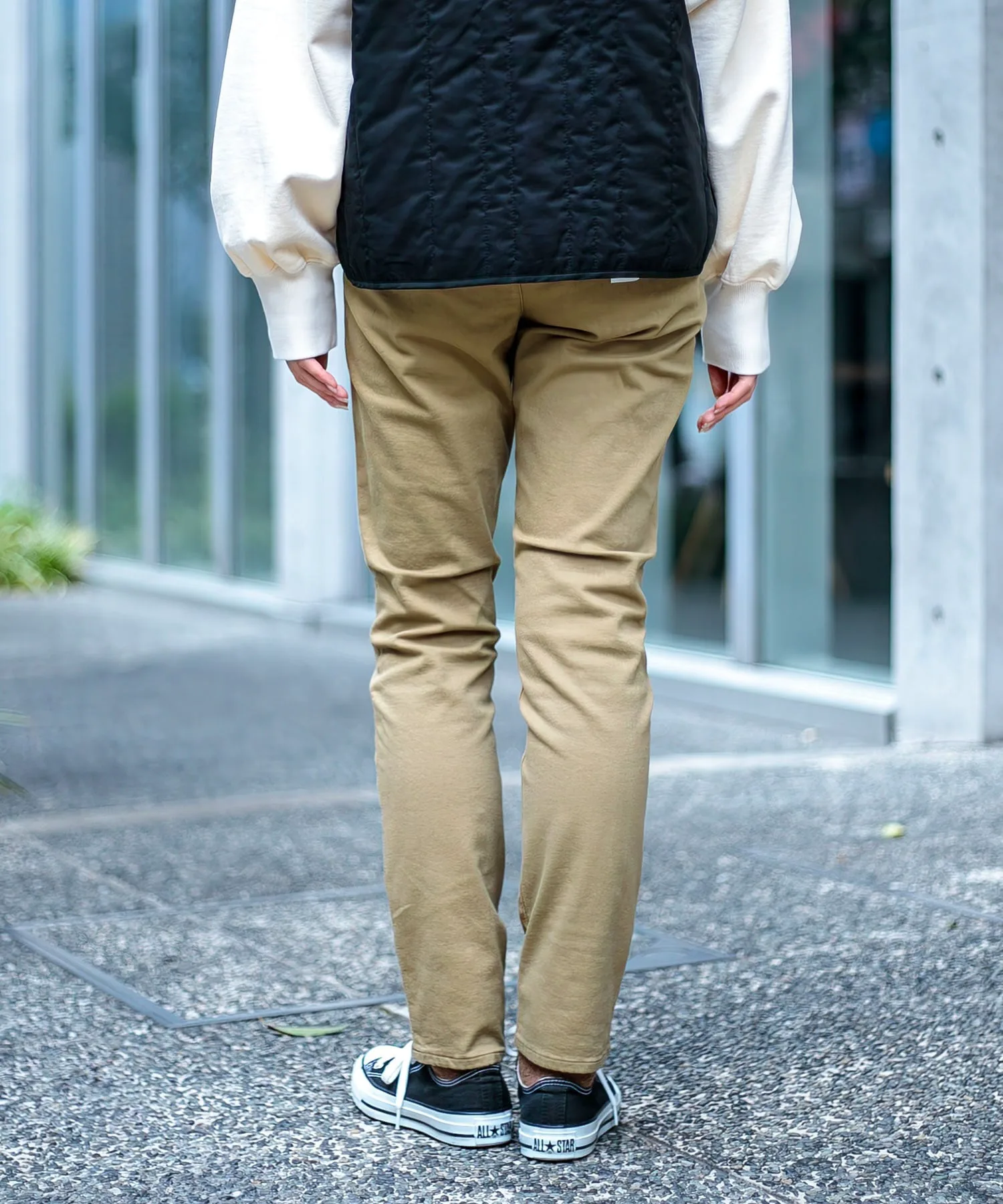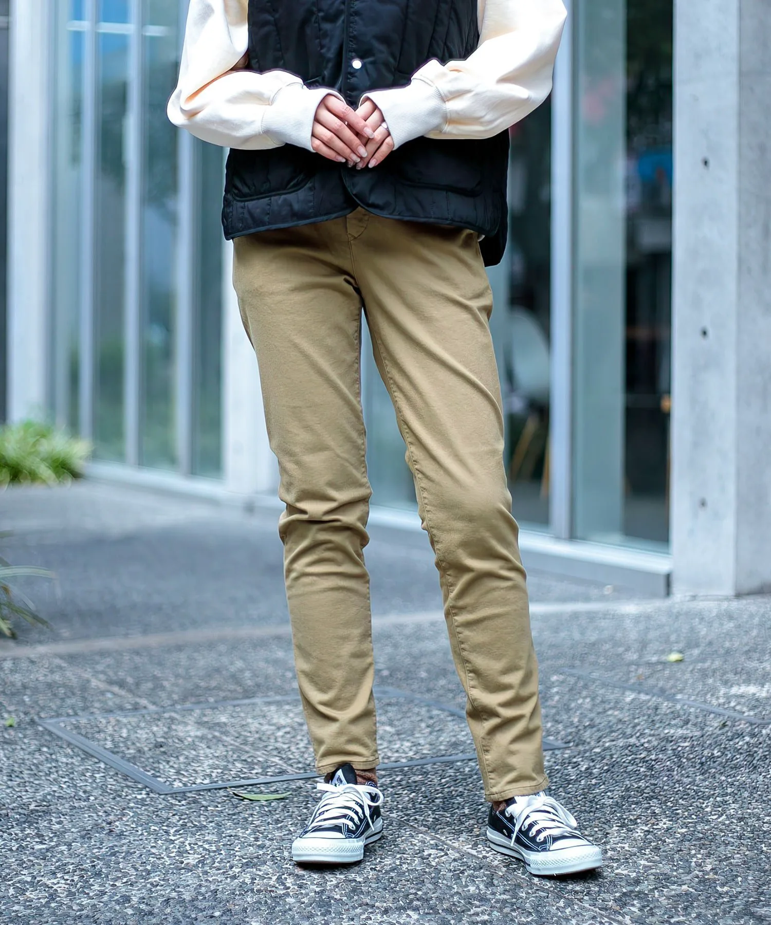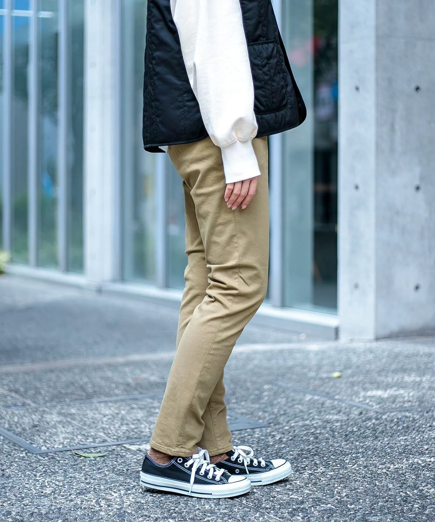 ◇ Отзыв о ношенииH160/Размер MДлина доходит до щиколоток, пояс свободный, эластичный. Трикотажная ткань мягкая и не ощущается жесткой на коже. Тепло ткани не влияет на силуэт, поэтому вам не нужно беспокоиться о том, что она будет выглядеть громоздкой. Узкий, зауженный силуэт позволяет легко сочетать эти брюки с платьями и длинными топами. ◎Доступные в базовых цветах, эти брюки идеально подходят для сочетания с рубашками с узорами и цветным трикотажем.