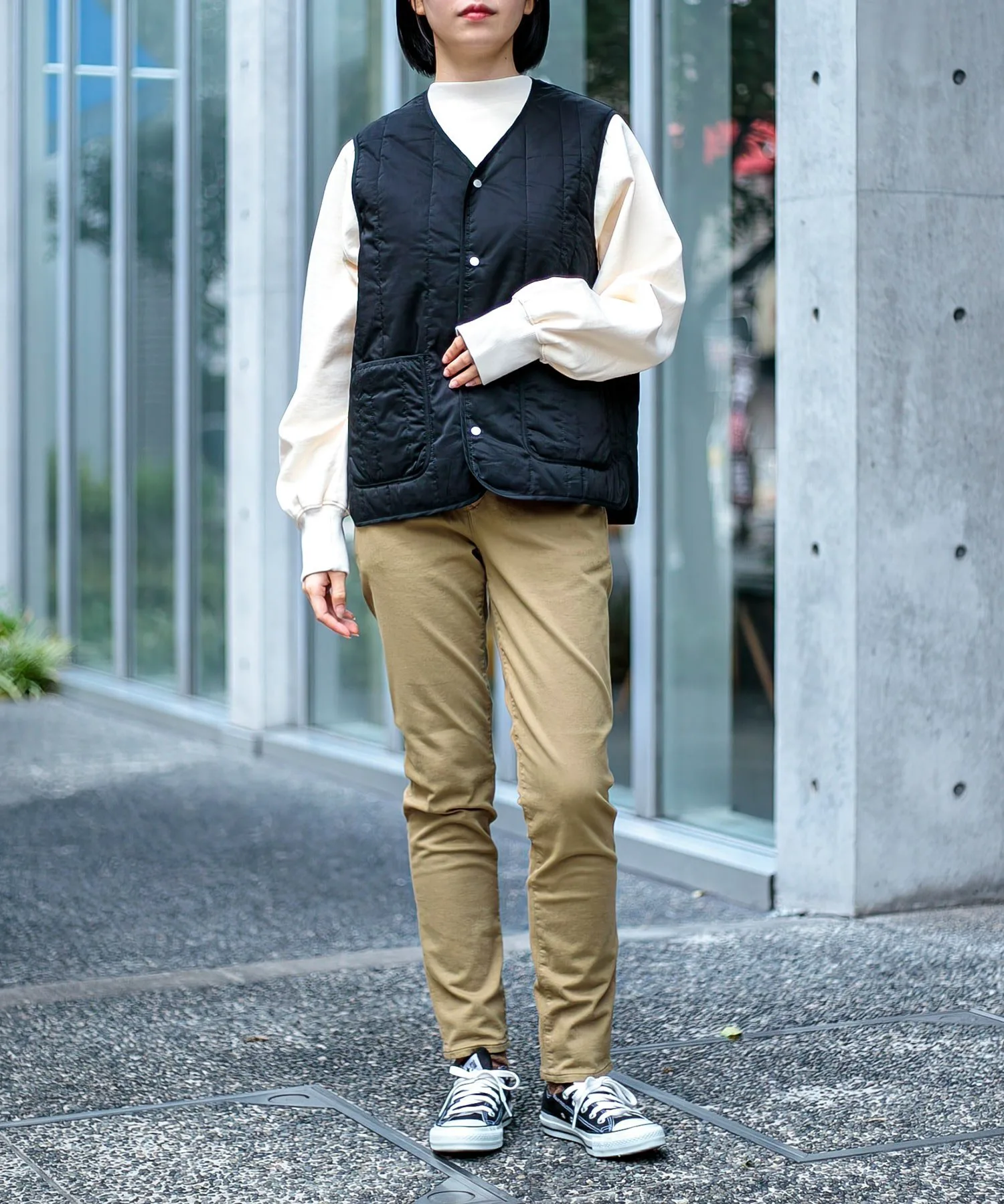 Модель 1: Рост 160 см/Размер M (Черный/Белый)Модель 2: Рост 163 см/Размер S (Бежевый/Оливковый)