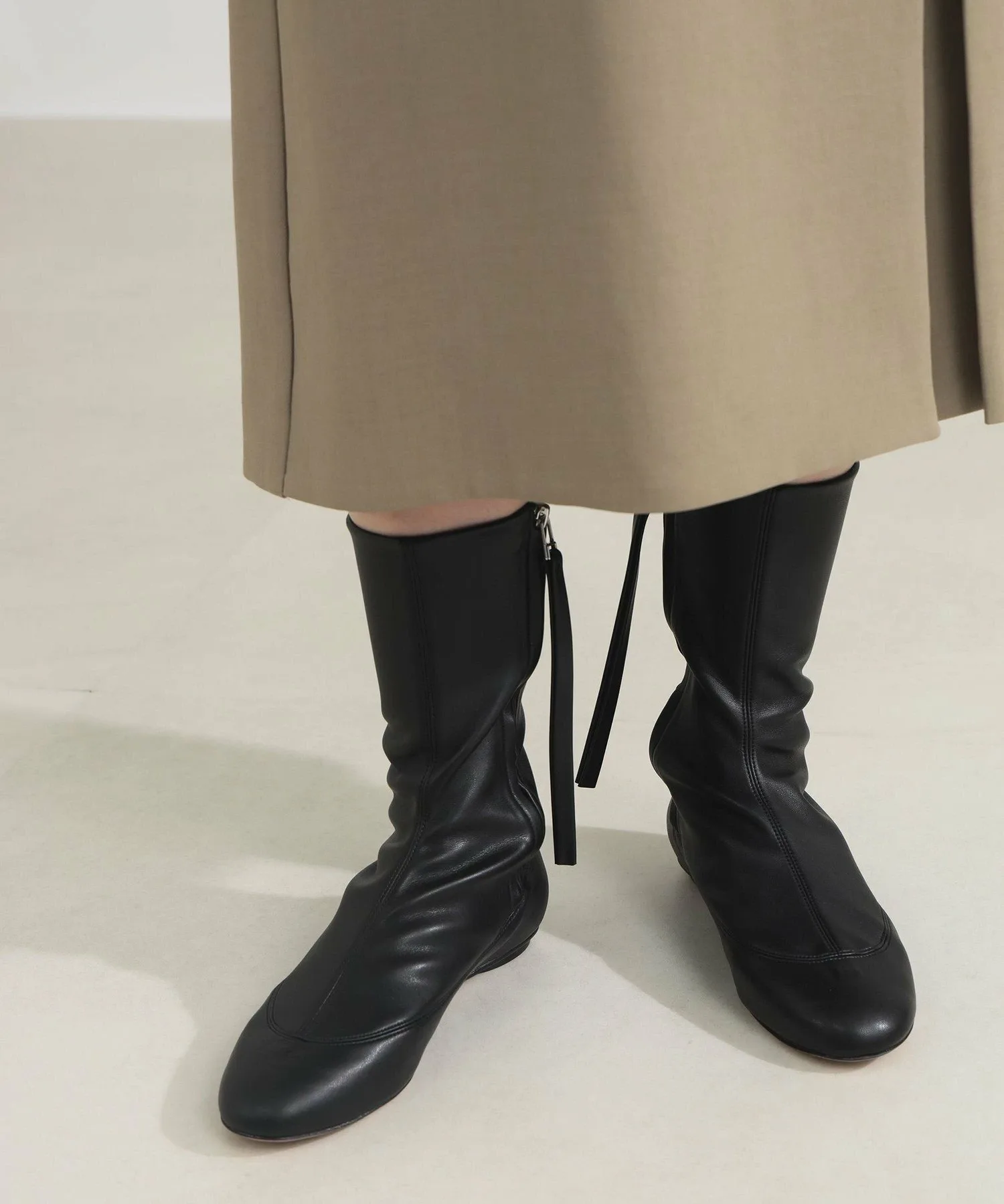 Боковая молния облегчает надевание и снимание, а длинная бахрома на язычке добавляет изысканности. Дизайн, который колышется при каждом движении, добавляет индивидуальности простому дизайну.